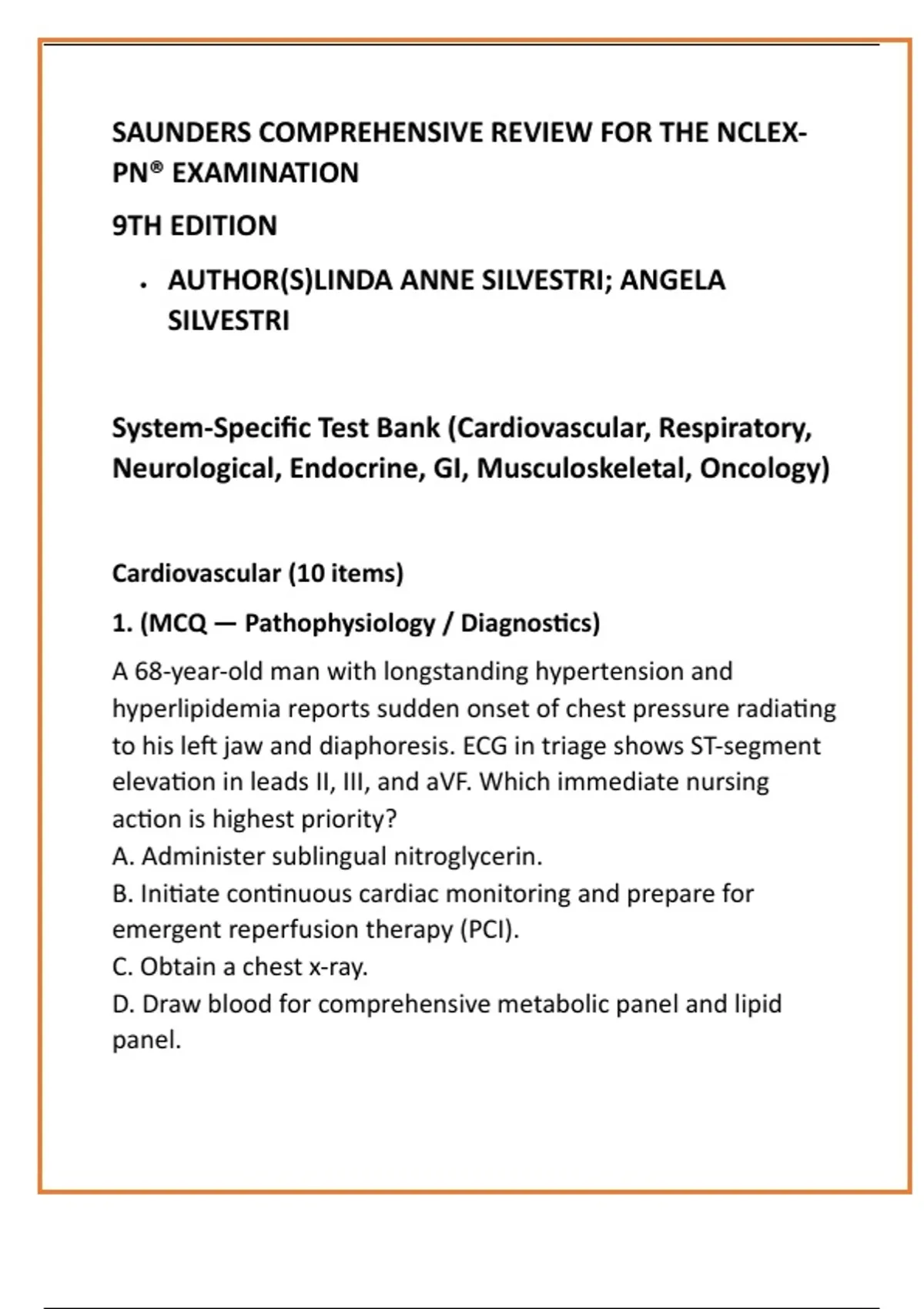 System-Specific Test Bank (Cardiovascular, Respiratory,