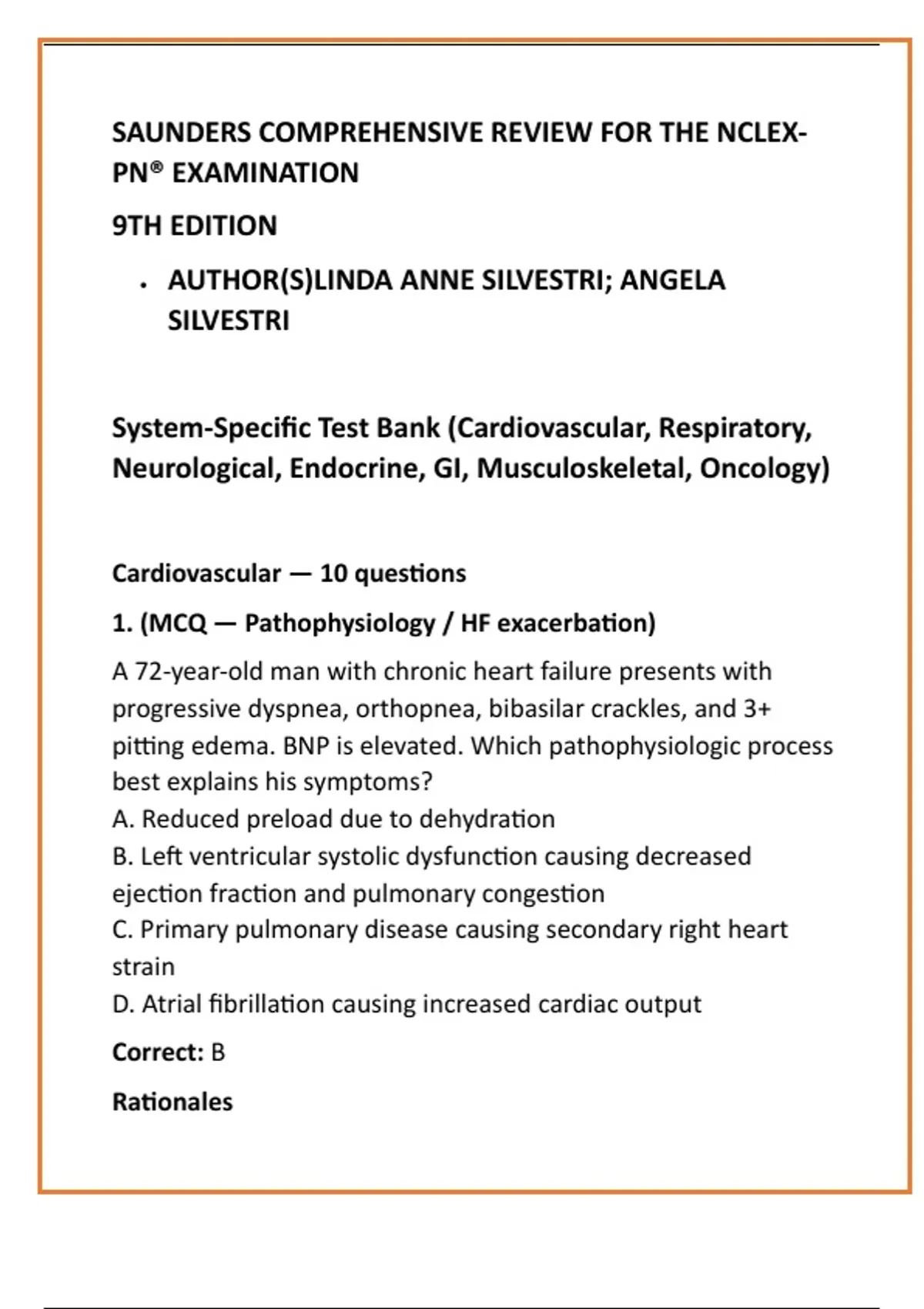 System-Specific Test Bank (Cardiovascular, Respiratory,