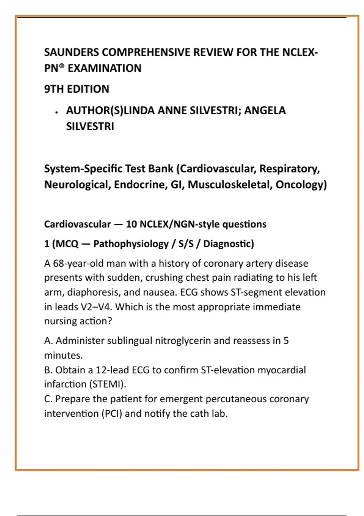 System-Specific Test Bank (Cardiovascular, Respiratory,