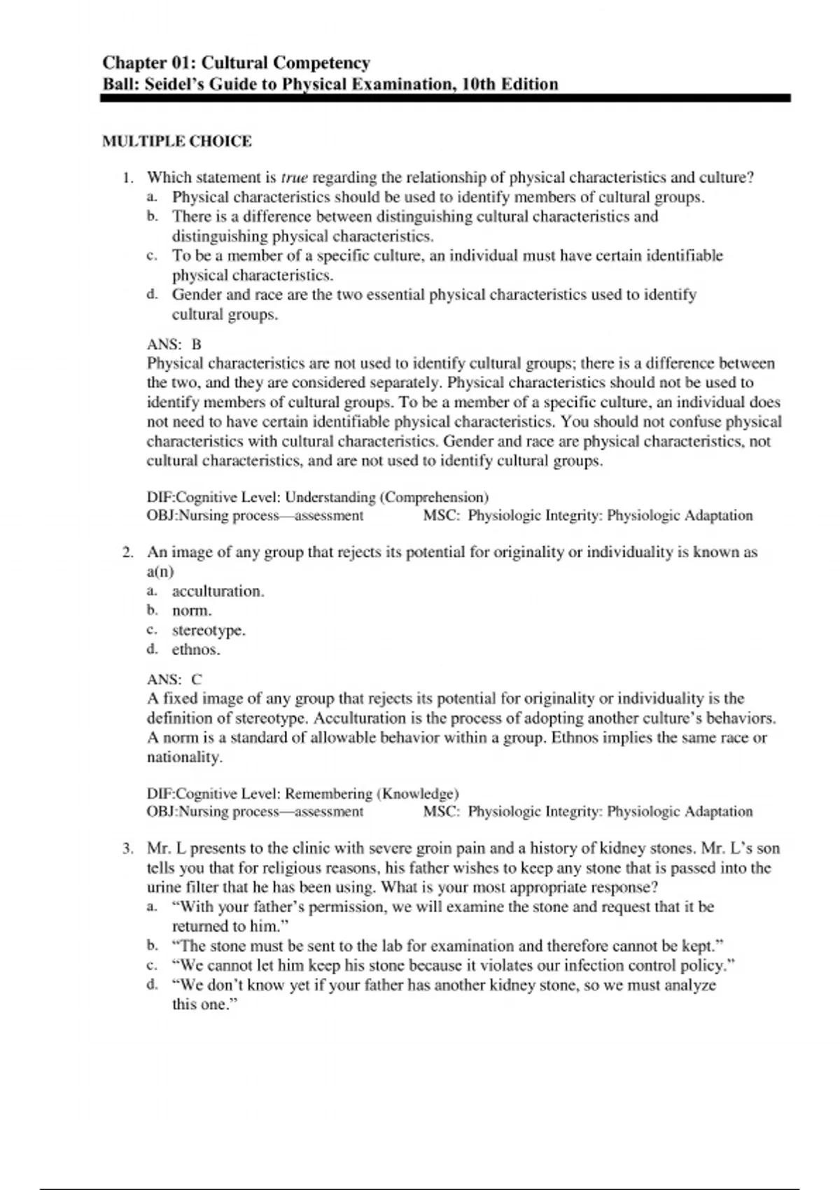 Master your health assessment exams with this verified Test Bank for Seidel’s Guide to Physical Examination (10th Edition) by Ball, Dains, Flynn, Solomon, and Stewart — featuring accurate, instructor-approved questions and detailed answers to help you excel in physical assessment, clinical reasoning, and patient examination skills.