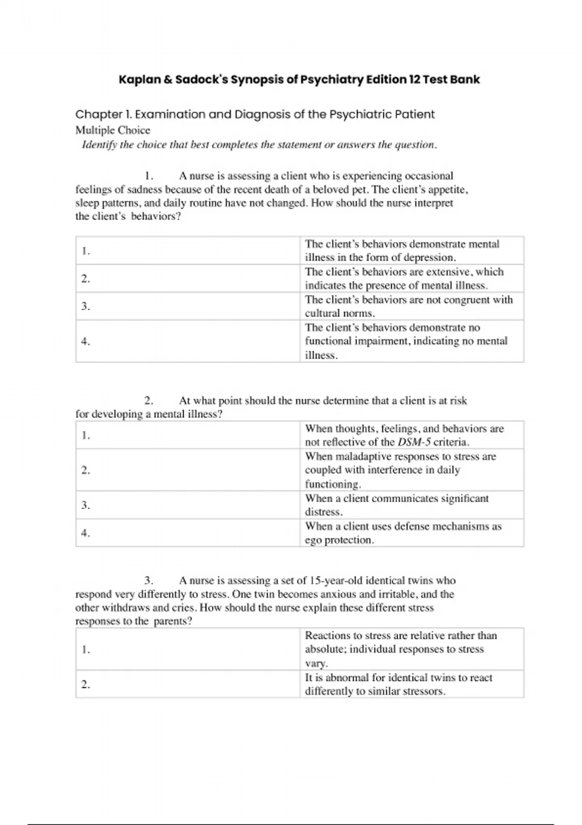 Master your psychiatry exams with this verified Test Bank for Kaplan and Sadock’s Synopsis of Psychiatry (12th Edition) by Robert Boland, M.D., and colleagues — featuring accurate, instructor-approved questions and detailed answers to help you excel in clinical psychiatry, mental health assessment, psychopharmacology, and diagnostic evaluation.