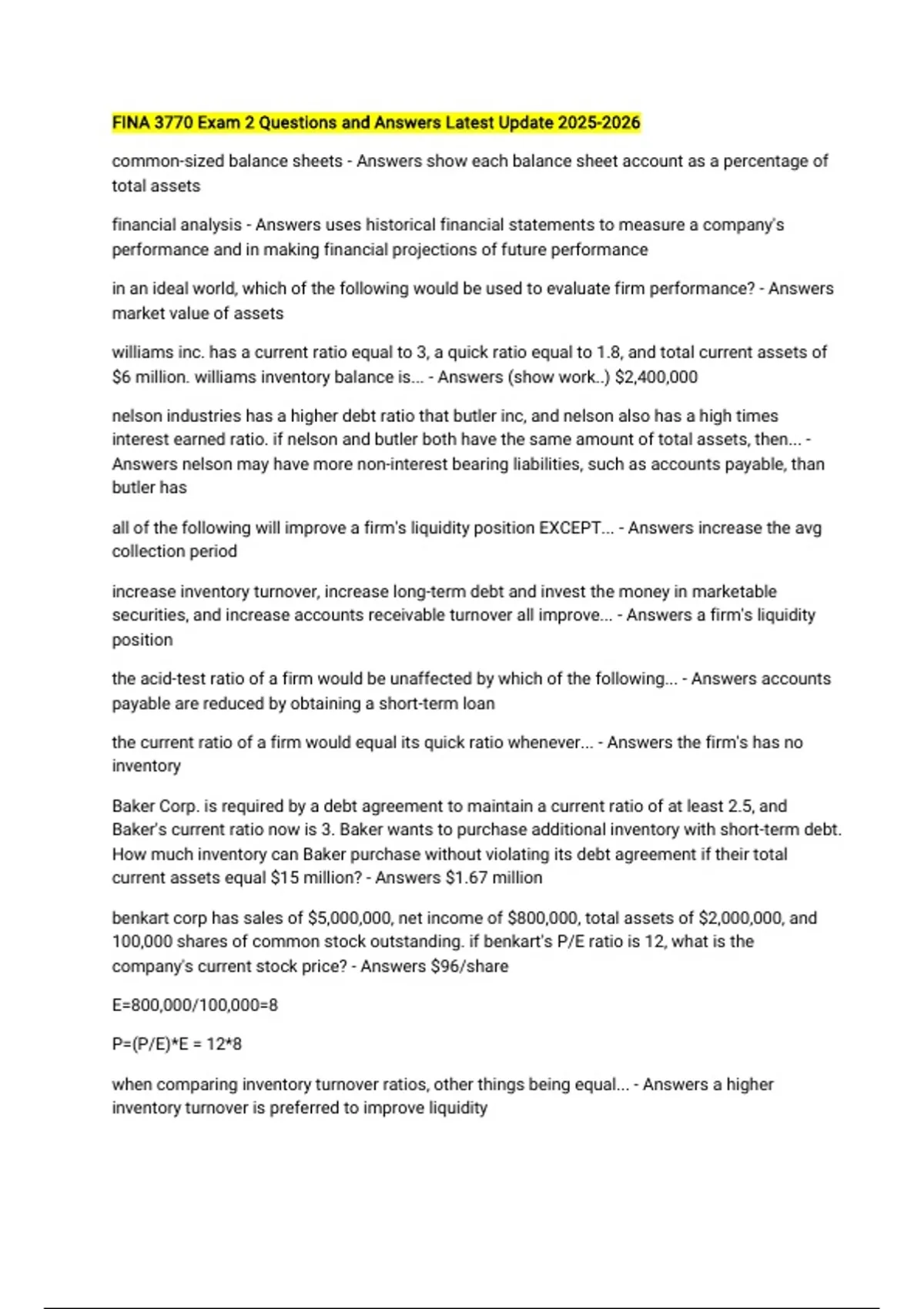 securities, and increase accounts receivable turnover all improve... - Answers a firm's liquidity