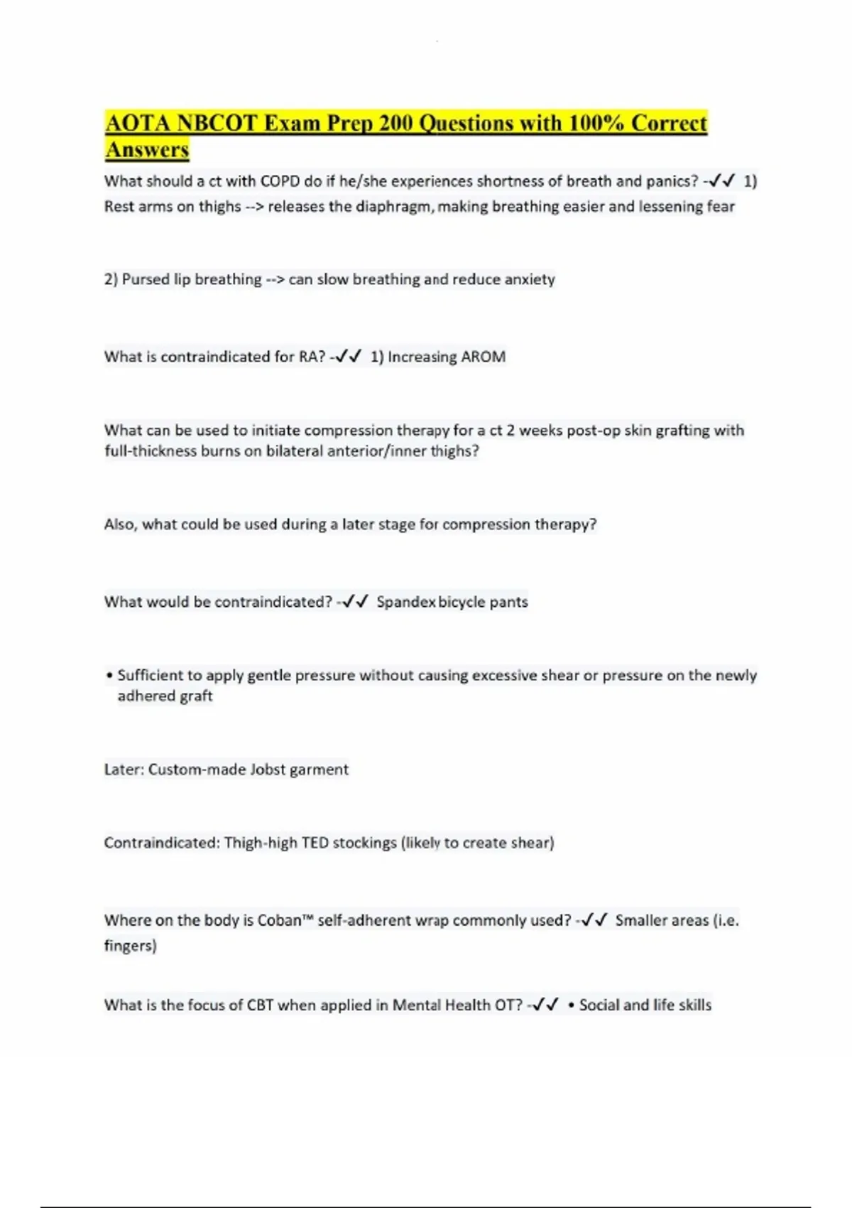 AOTA NBCOT Exam Prep 200 Questions with 100% Correct Answers AOTA NBCOT Exam Prep 200 Questions with 100% Correct Answers