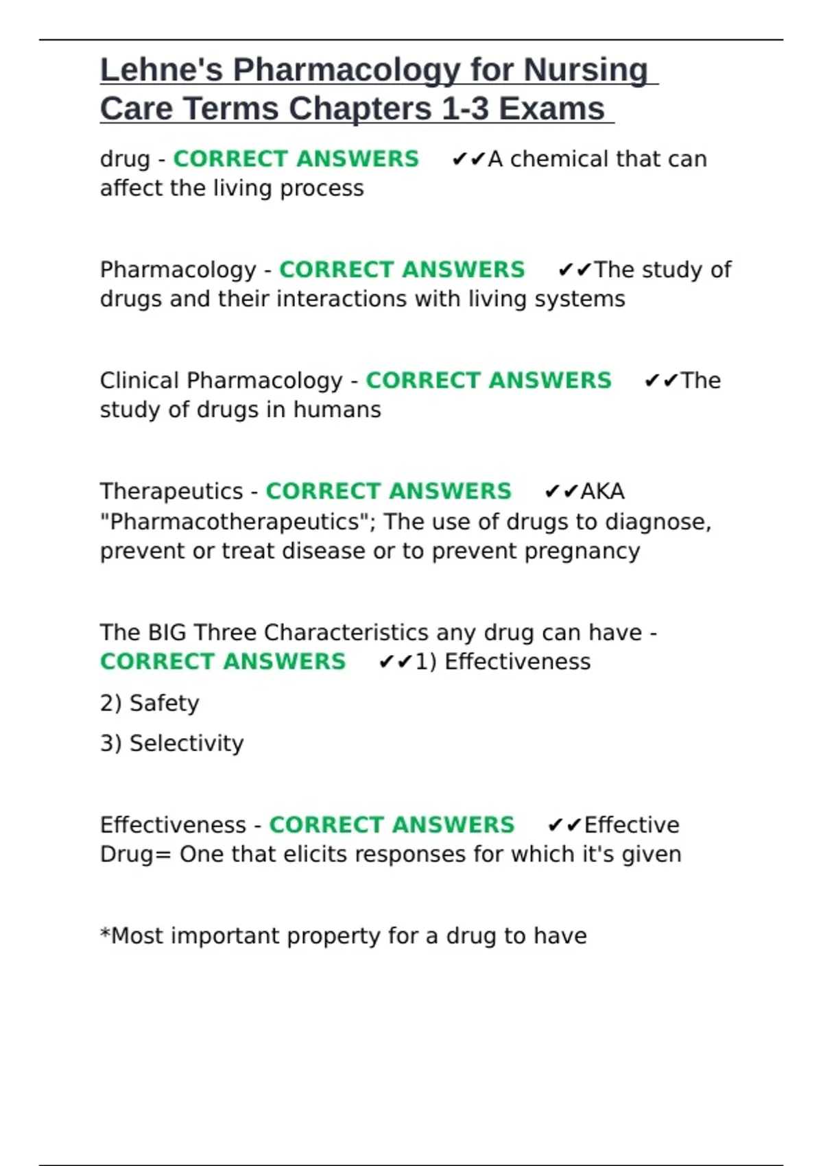 CORRECT ANSWERS ✔✔1) Effectiveness