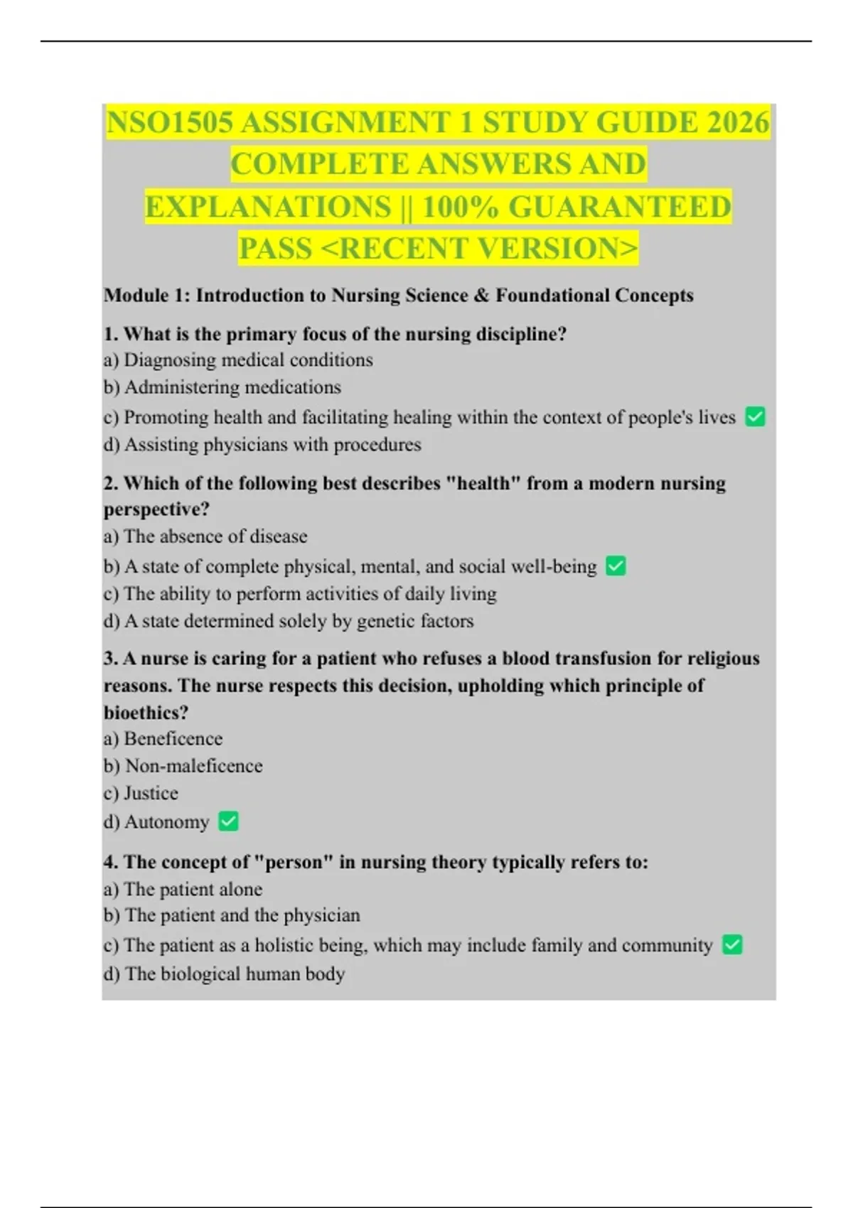 NSO1505 ASSIGNMENT 1 STUDY GUIDE 2026 COMPLETE ANSWERS AND EXPLANATIONS || 100% GUARANTEED PASS &lt;RECENT VERSION&gt;