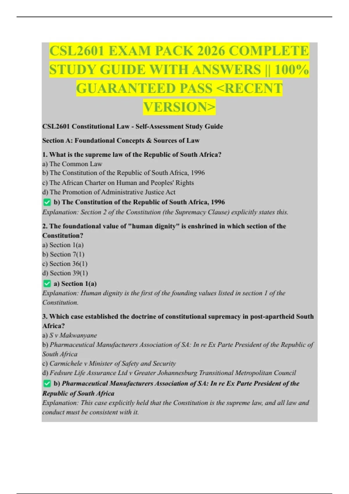 CSL2601 EXAM PACK 2026 COMPLETE STUDY GUIDE WITH ANSWERS || 100% GUARANTEED PASS <RECENT VERSION>