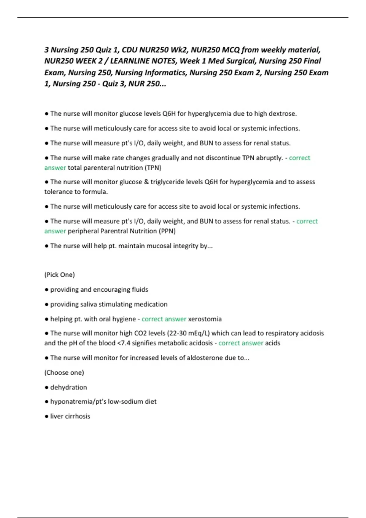 3 Nursing 250 Quiz 1, CDU NUR250 Wk2, NUR250 MCQ from weekly material, NUR250 WEEK 2 / LEARNLINE NOTES, Week 1 Med Surgical, Nursing 250 Final Exam, Nursing 250, Nursing Informatics, Nursing 250 Exam 2, Nursing 250 Exam 1, Nursing 250 - Quiz 3, NUR 250...
