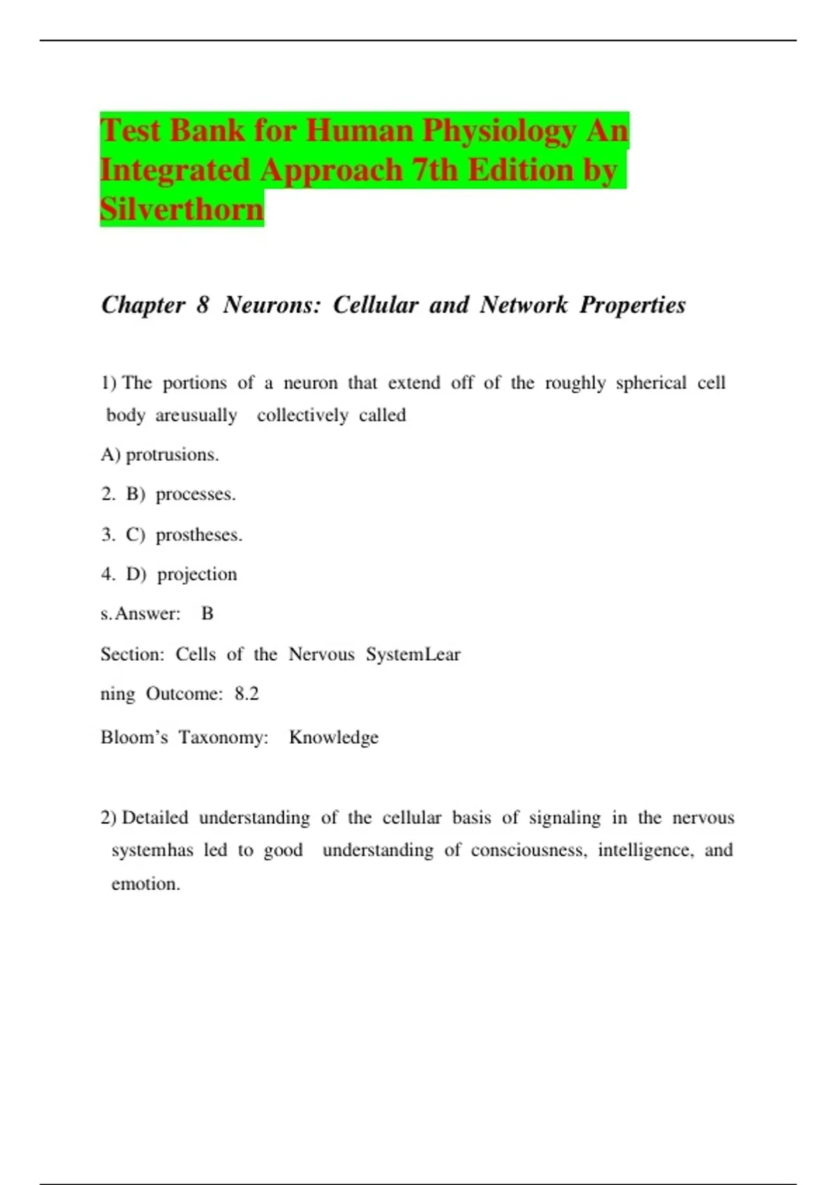 Test Bank for Human Physiology An Integrated Approach 7th Edition by SilverthornTest Bank for Human Physiology An Integrated Approach 7th Edition by Test Bank for Human Physiology: An Integrated Approach 7th Edition by Dee Unglaub Silverthorn | Complete Guide A+