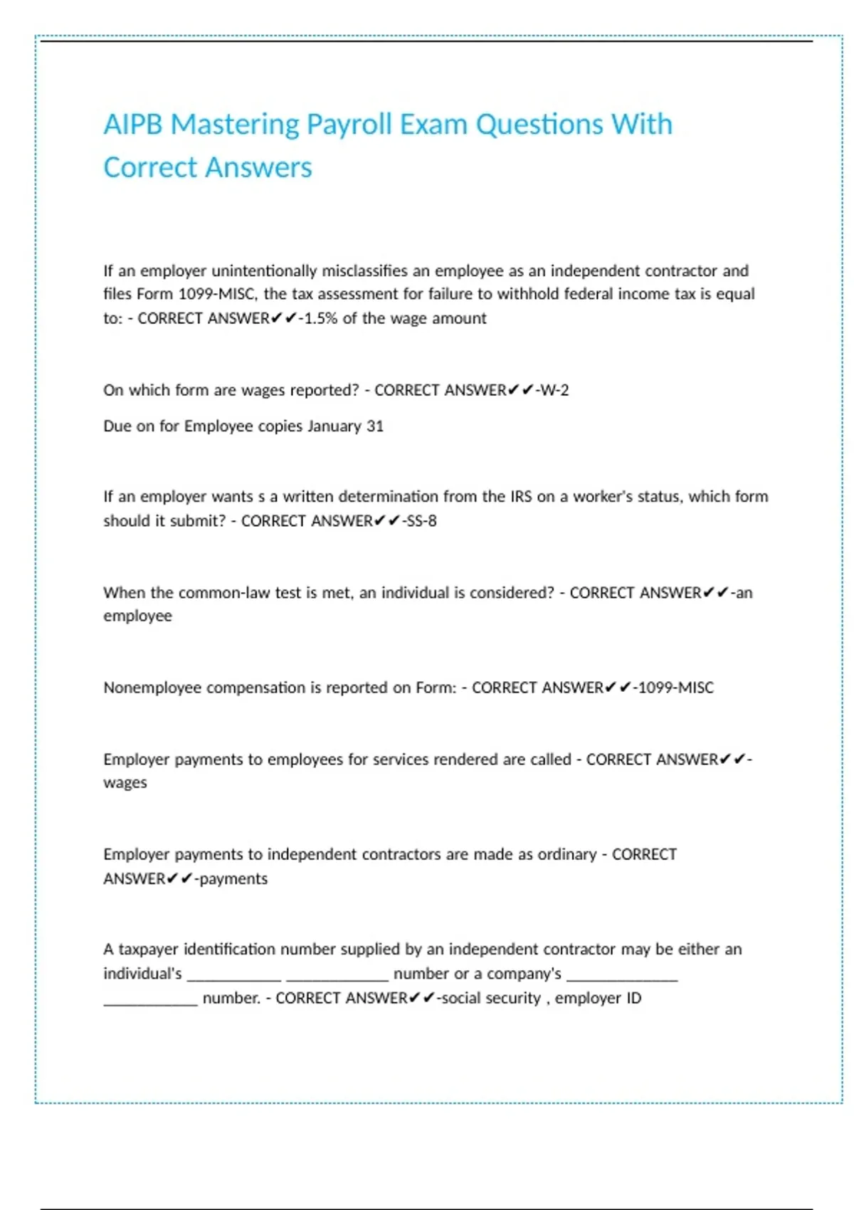 AIPB Mastering Payroll Exam Questions With