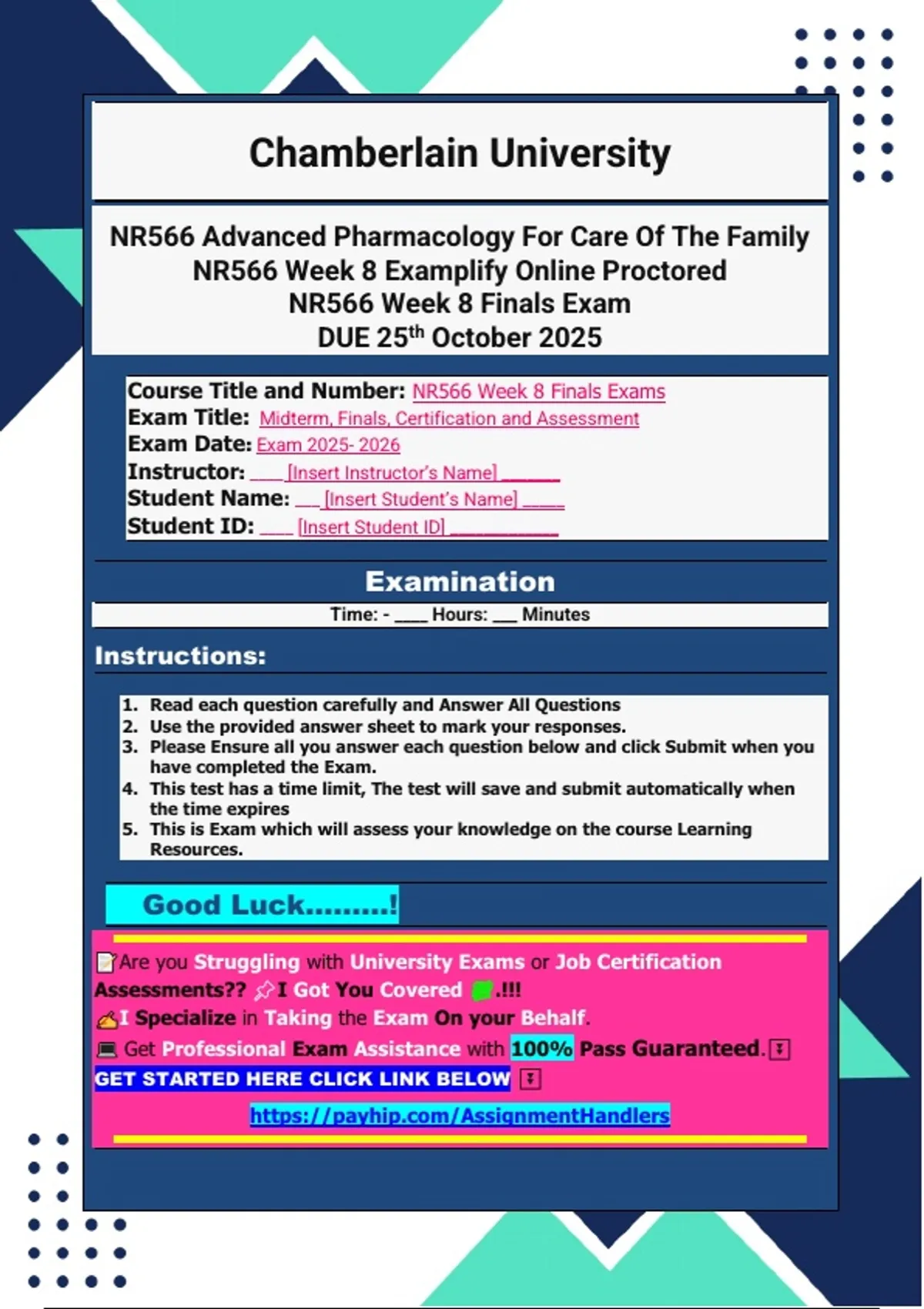 NR566 Week 8 Finals Exam Review Due October 25th 2025