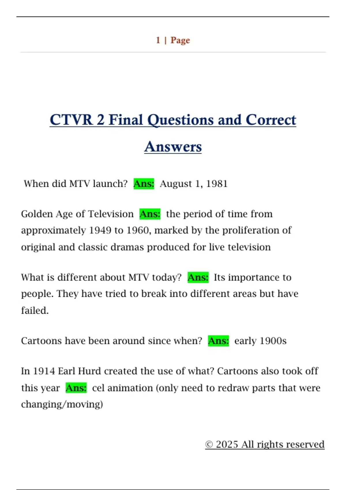 CTVR 2 Final Questions and Correct