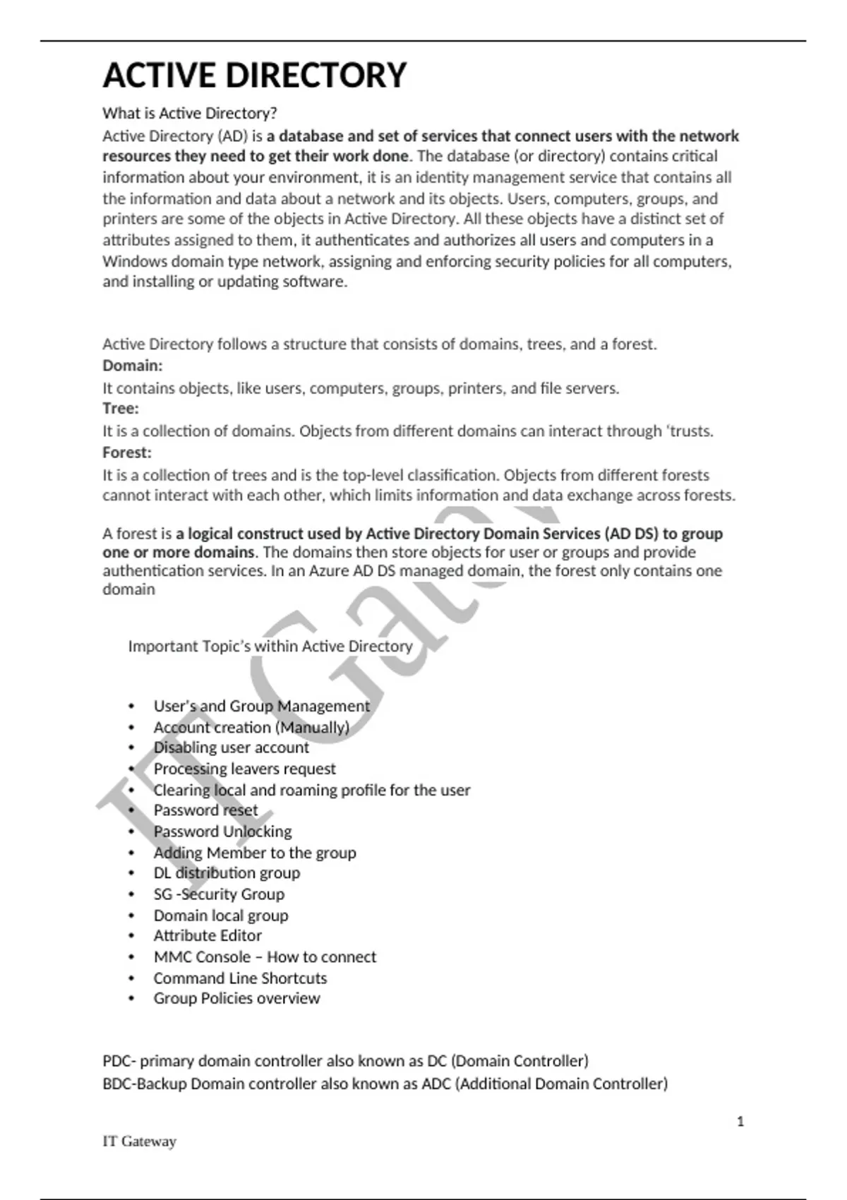 PDC- primary domain controller also known as DC (Domain Controller)