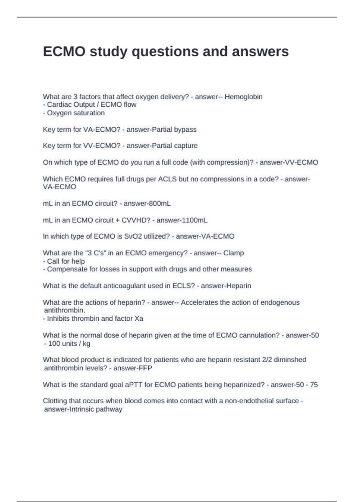 ECMO study questions and answers
