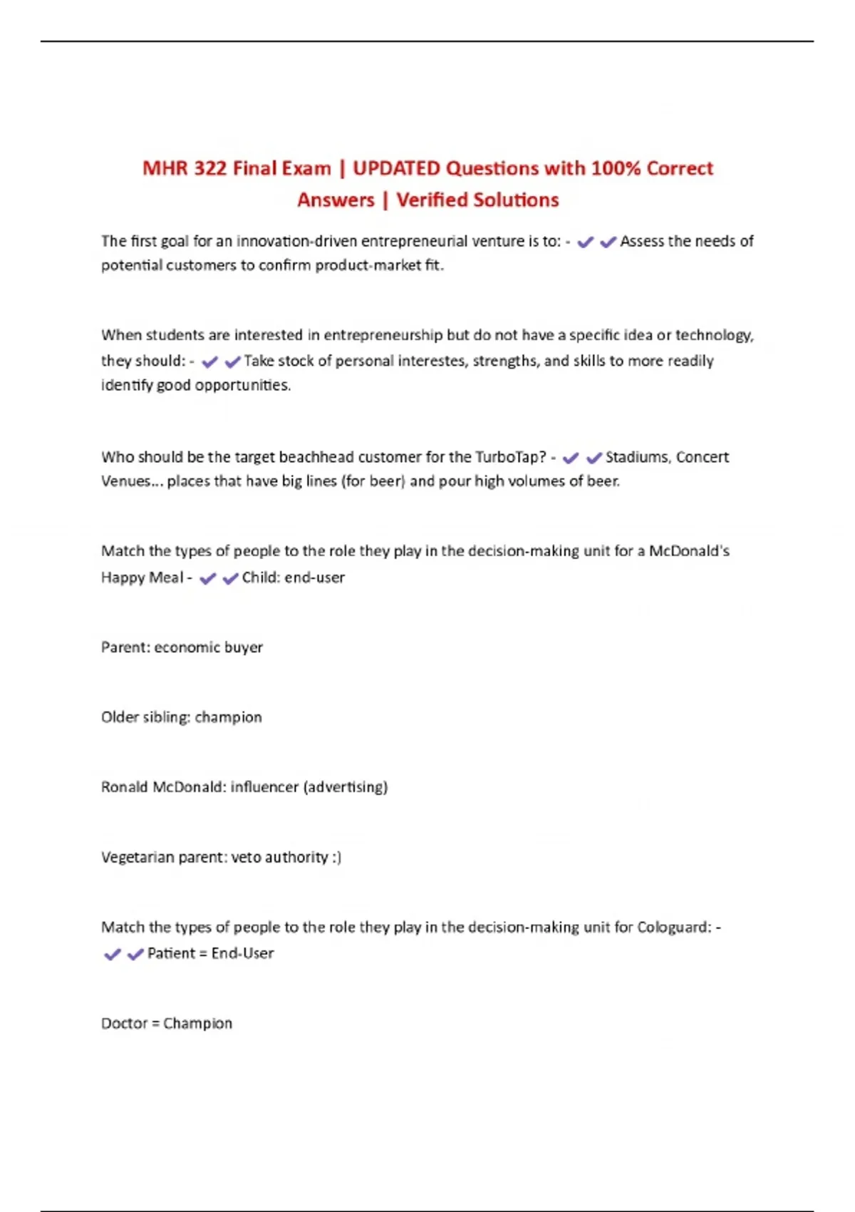 MHR 322 Final Exam | UPDATED Questions with 100% Correct Answers | Verified Solutions