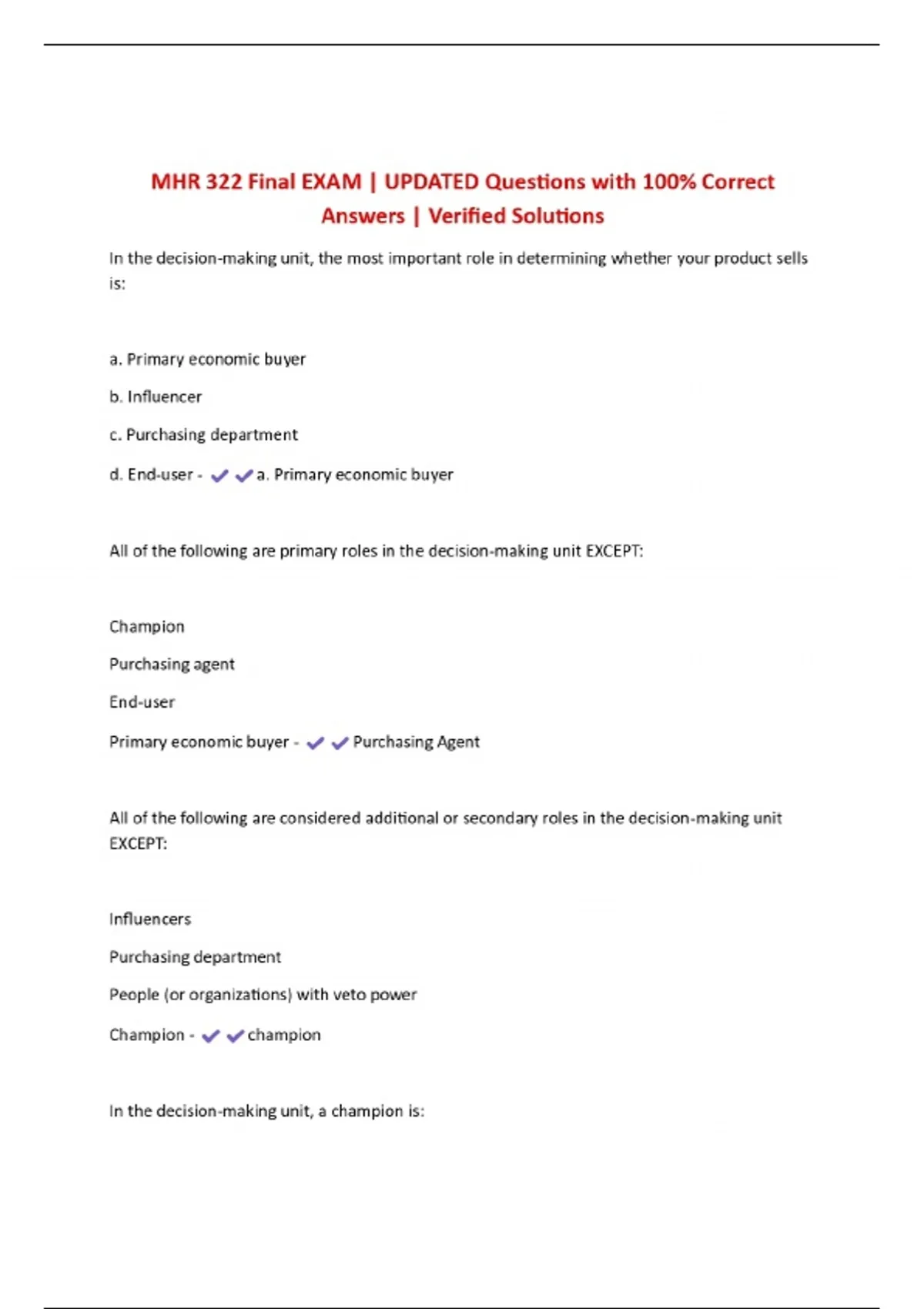 MHR 322 Final EXAM | UPDATED Questions with 100% Correct Answers | Verified Solutions