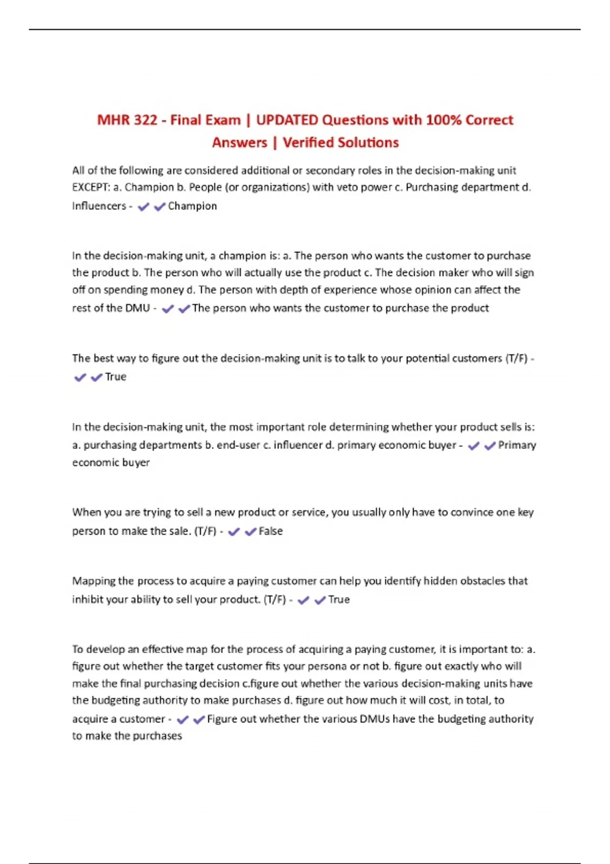 MHR 322 - Final Exam | UPDATED Questions with 100% Correct Answers | Verified Solutions