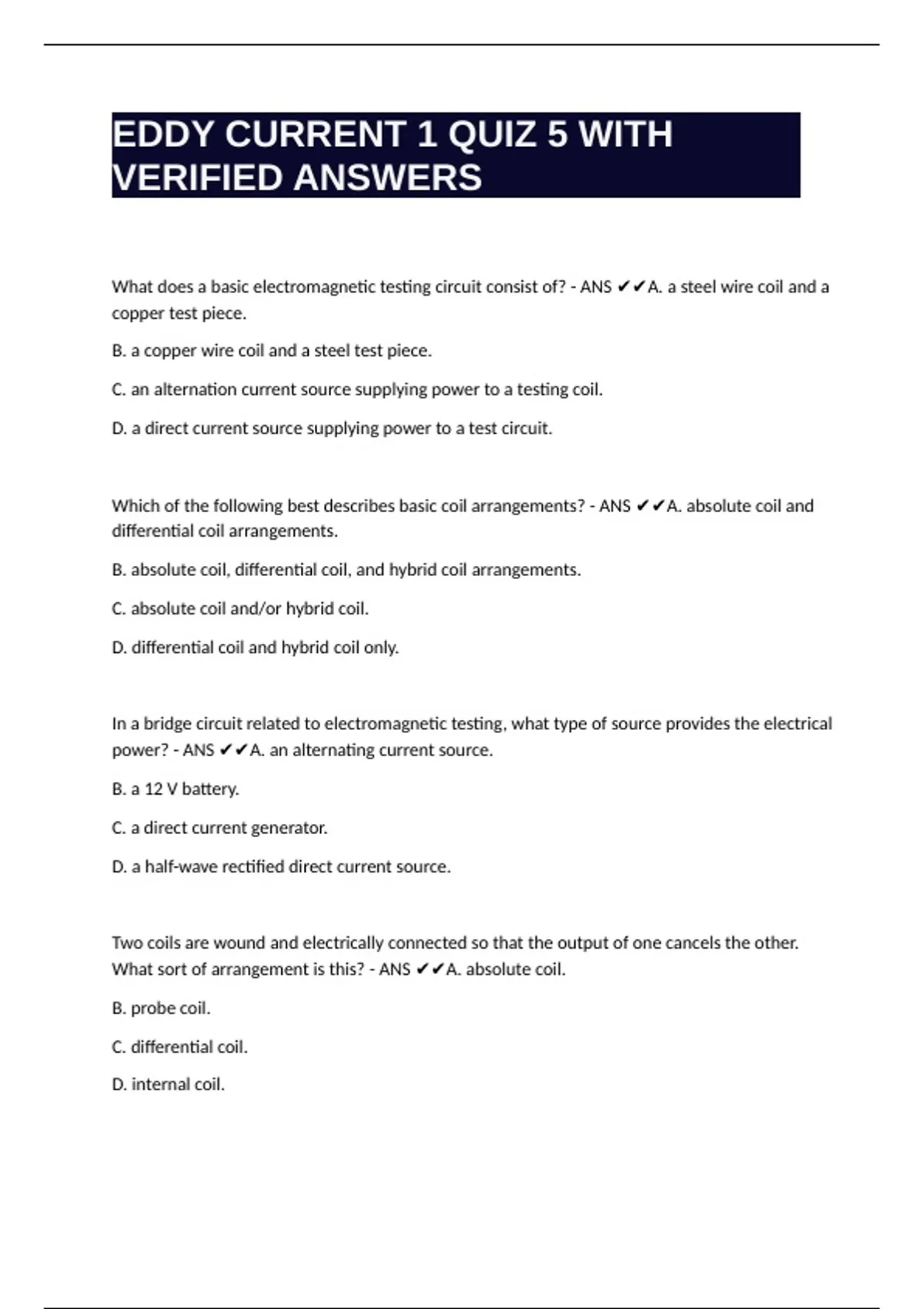 What does a basic electromagnetic testing circuit consist of? - ANS ✔✔A. a steel wire coil and a