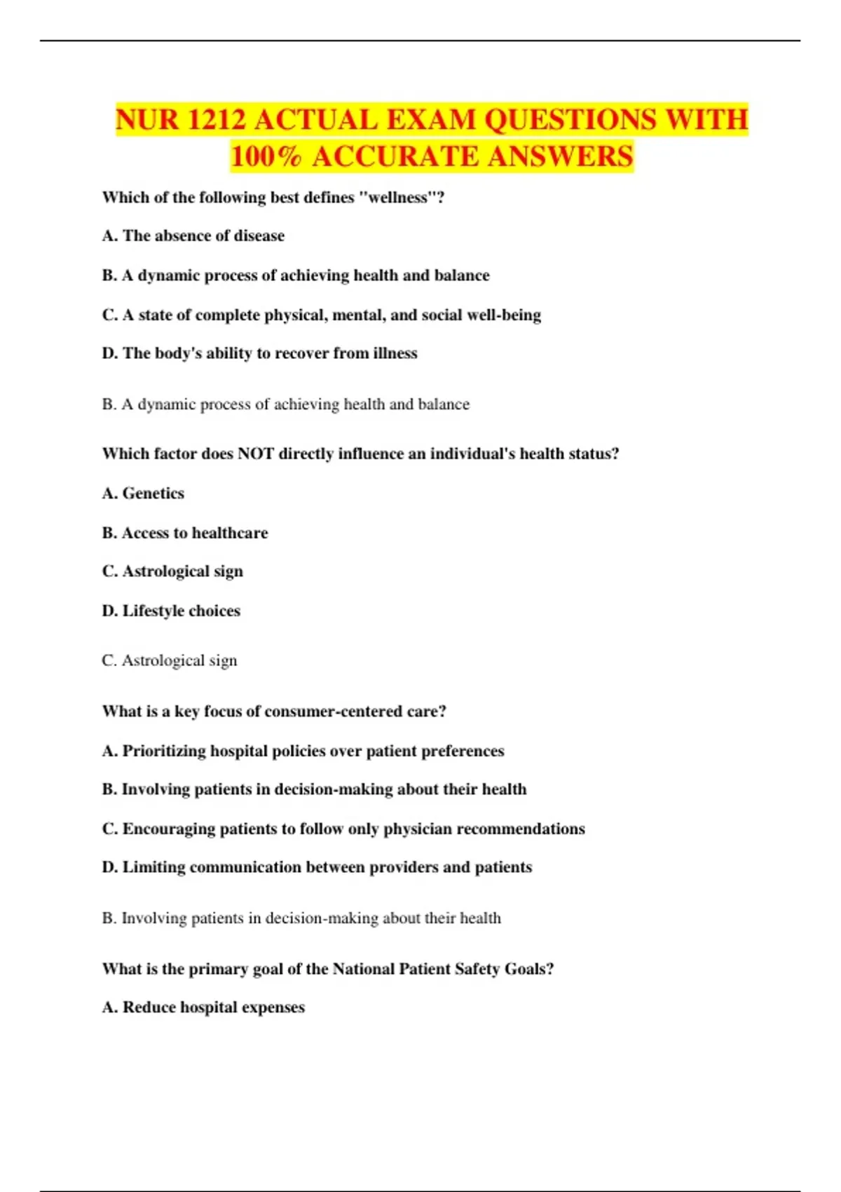 NUR 1212 ACTUAL EXAM QUESTIONS WITH
