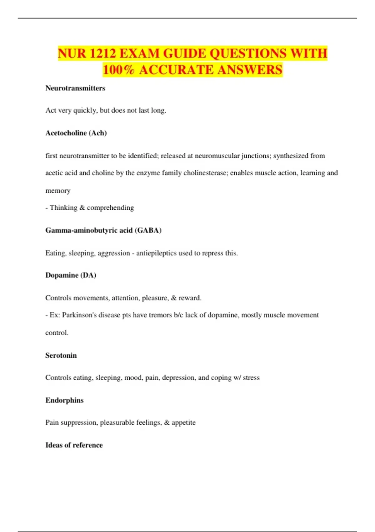 NUR 1212 EXAM GUIDE QUESTIONS WITH 100% ACCURATE ANSWERS