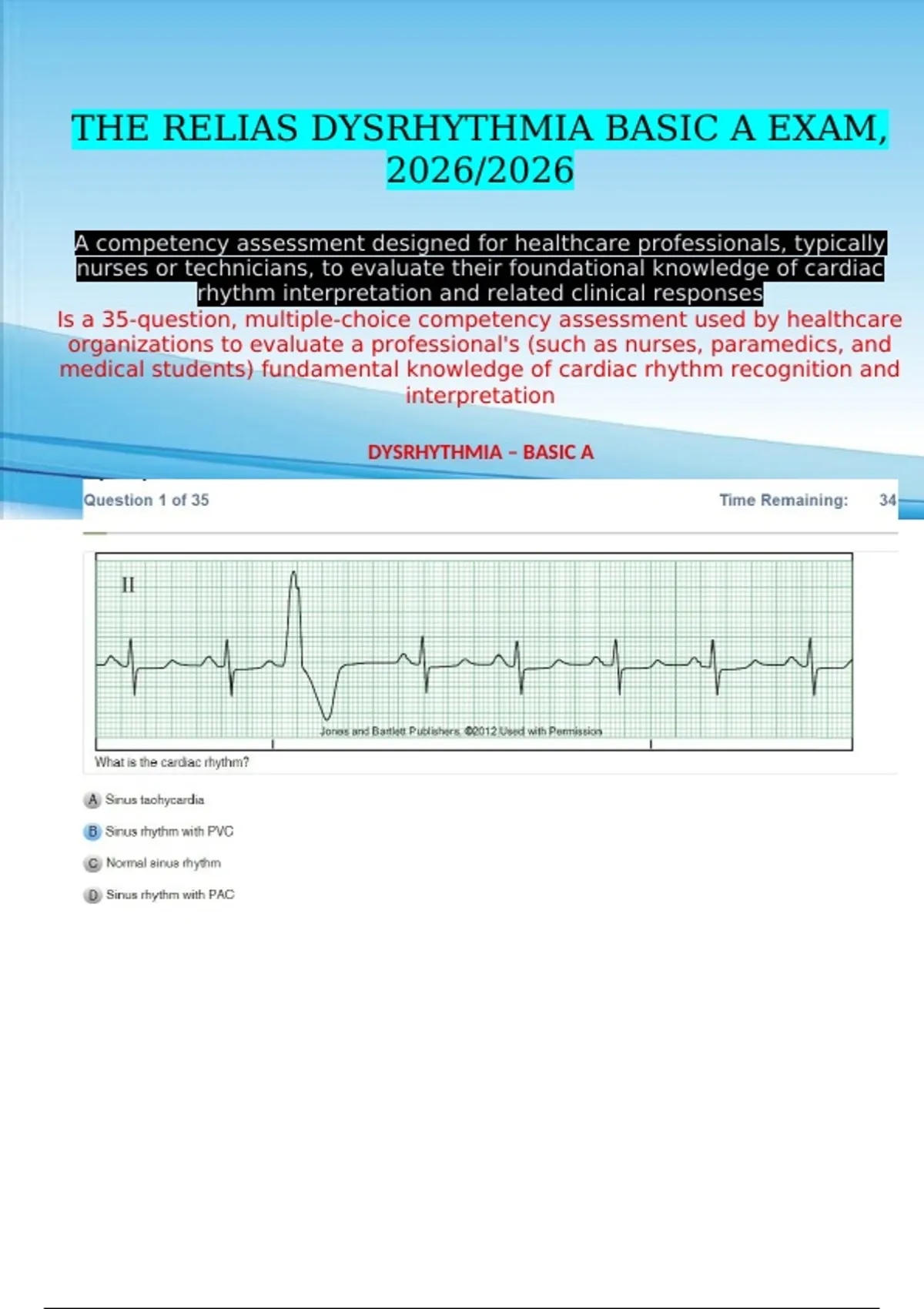 THE RELIAS DYSRHYTHMIA BASIC A EXAM,