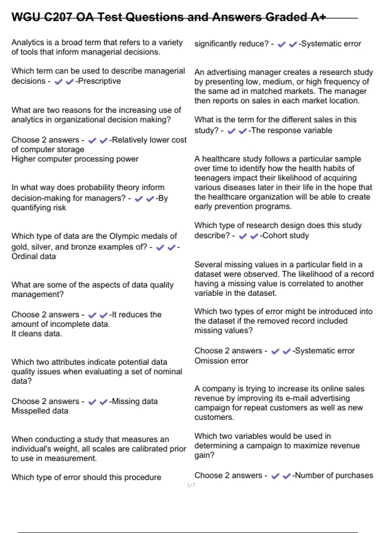 , WGU C207 OA Test Questions and Answers Graded A+