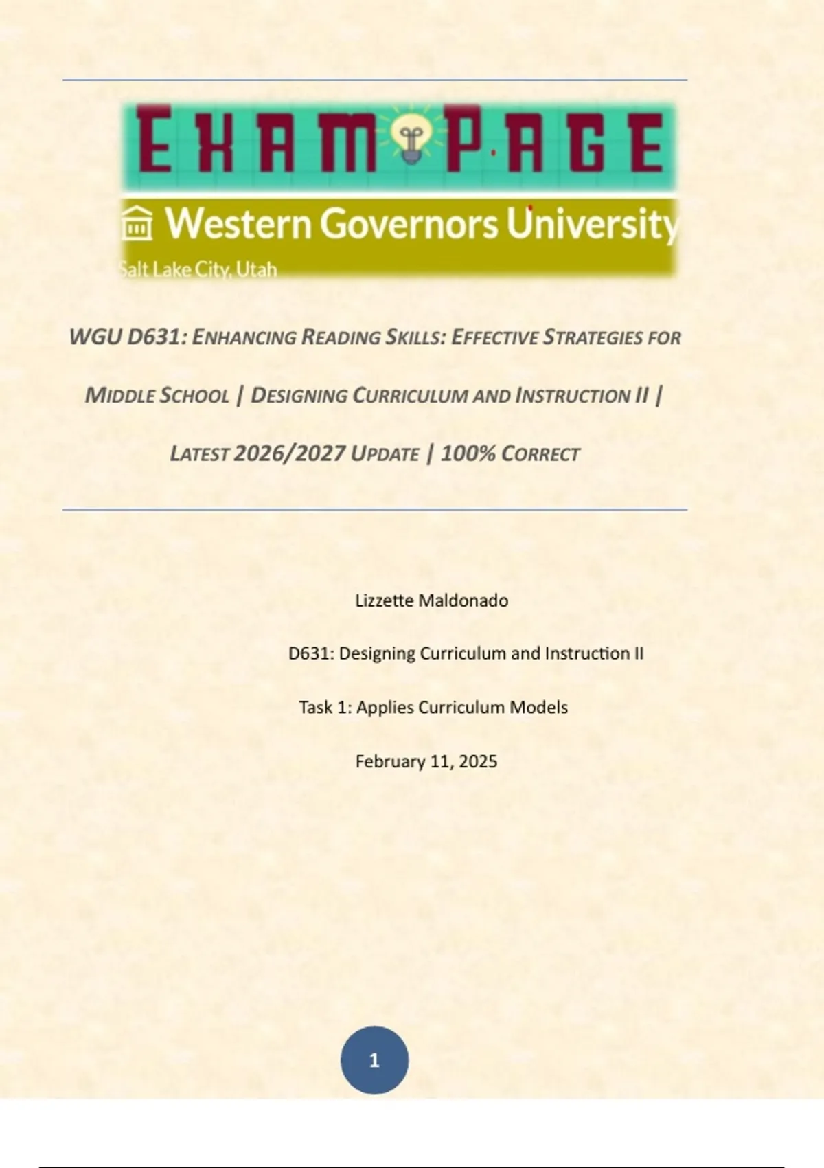 D631: Designing Curriculum and Instruction II