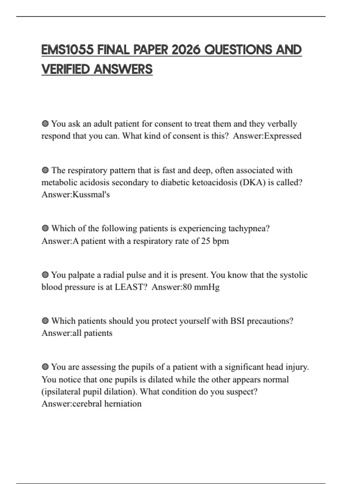 ◍ Which skin condition is an indication of shock? Answer:Pale, cool,