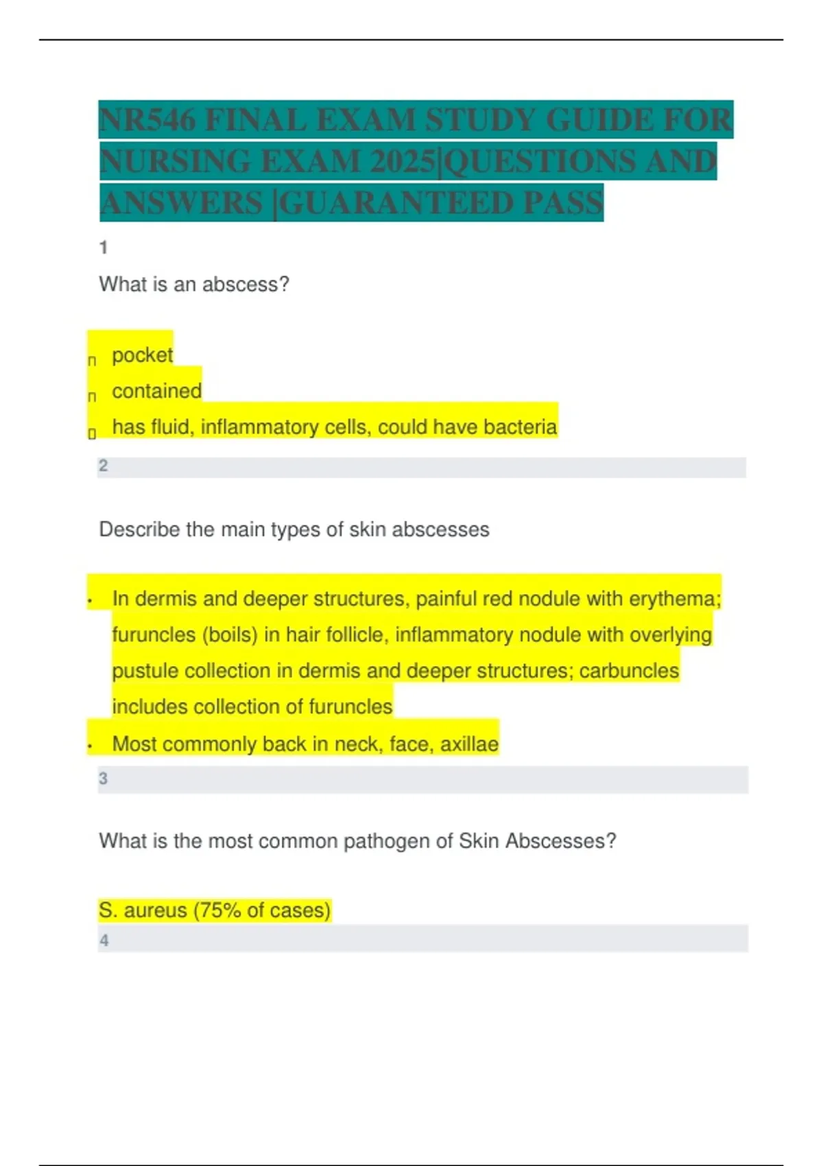 NR546 FINAL EXAM STUDY GUIDE FOR