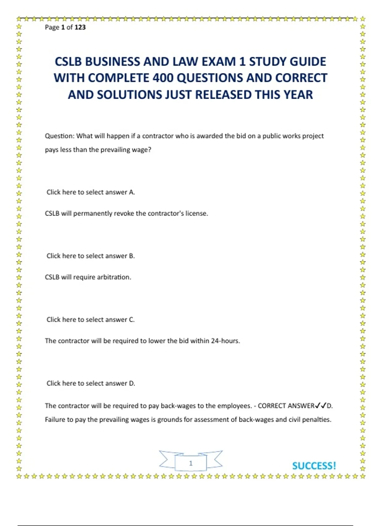 CSLB BUSINESS AND LAW EXAM 1 STUDY GUIDE