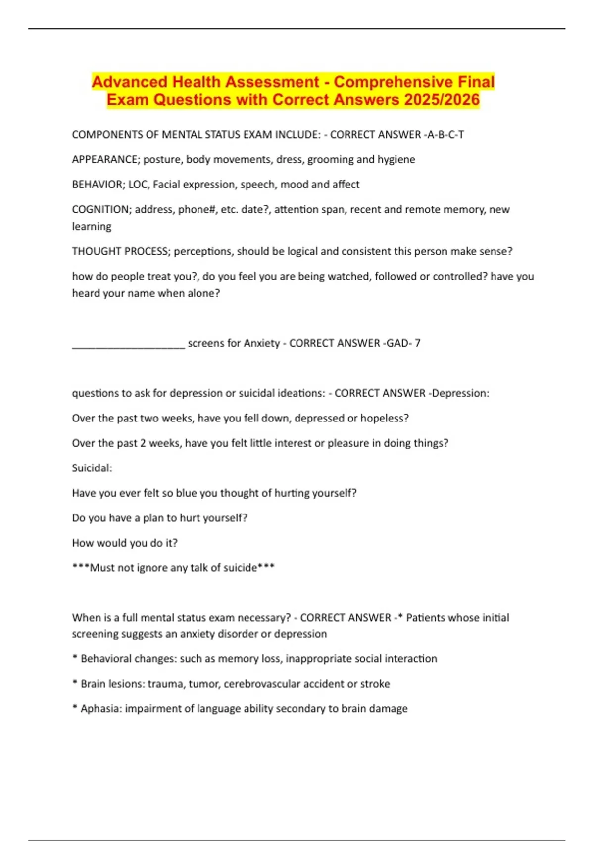 COMPONENTS OF MENTAL STATUS EXAM INCLUDE: - CORRECT ANSWER -A-B-C-T