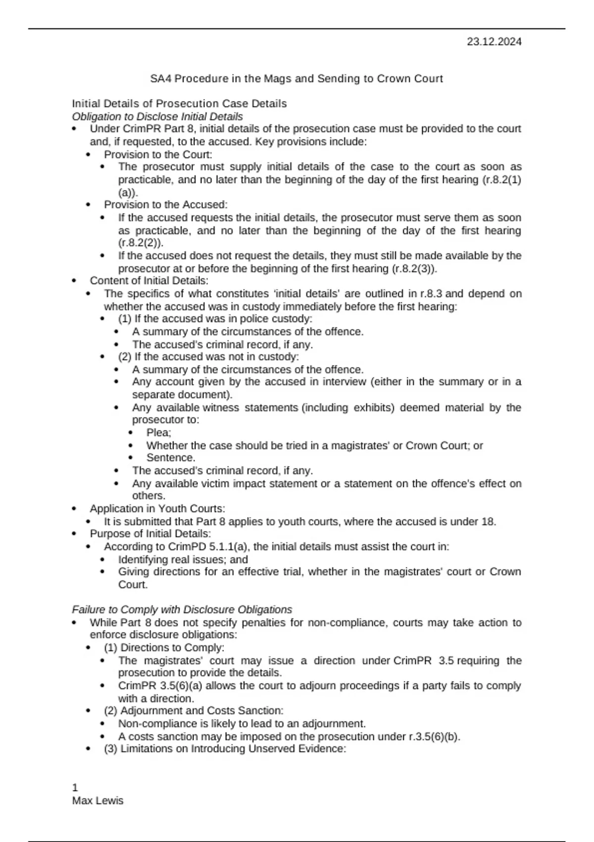 Under CrimPR Part 8, initial details of the prosecution case must be provided to the court