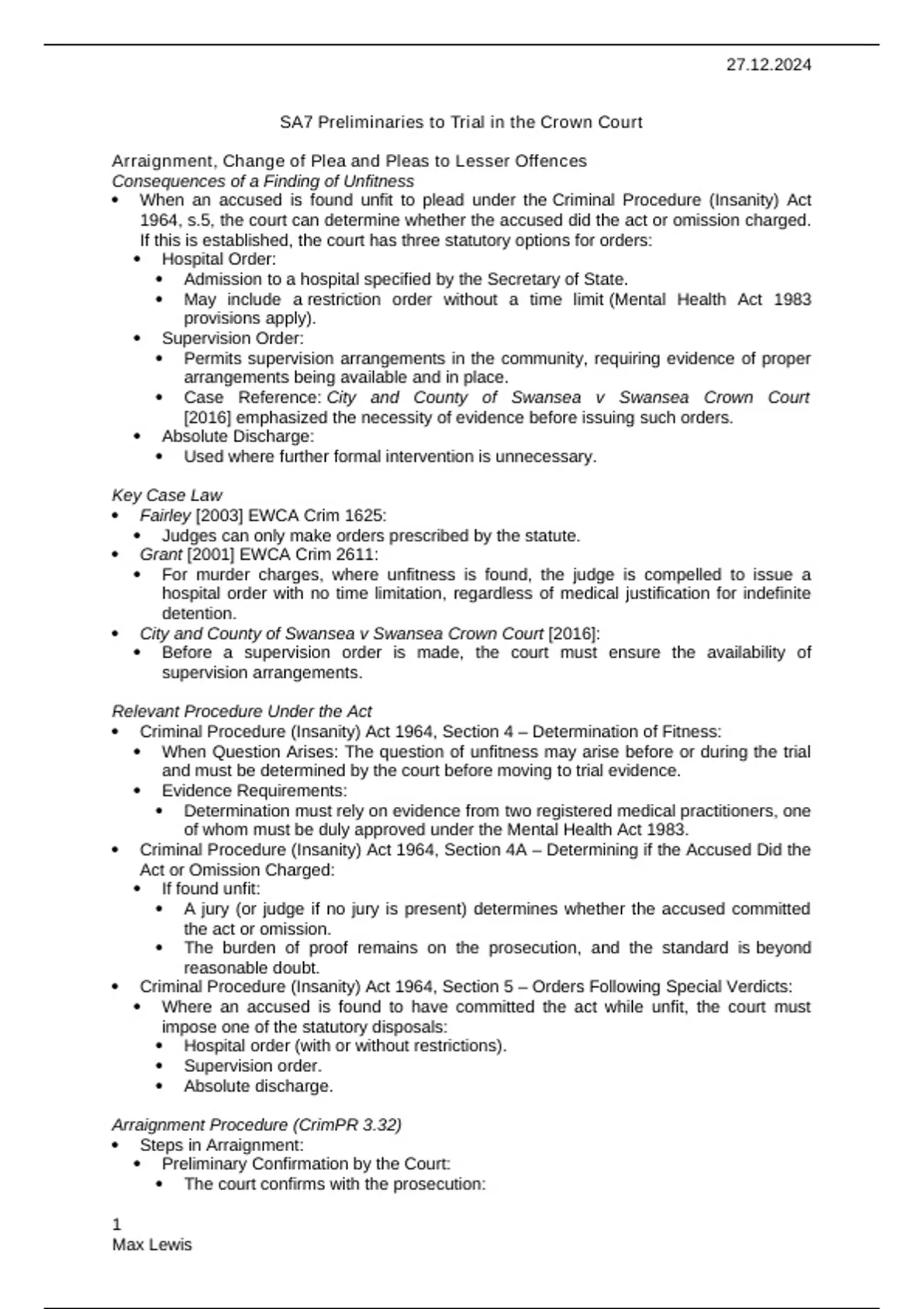 SA7 Preliminaries to Trial in the Crown Court