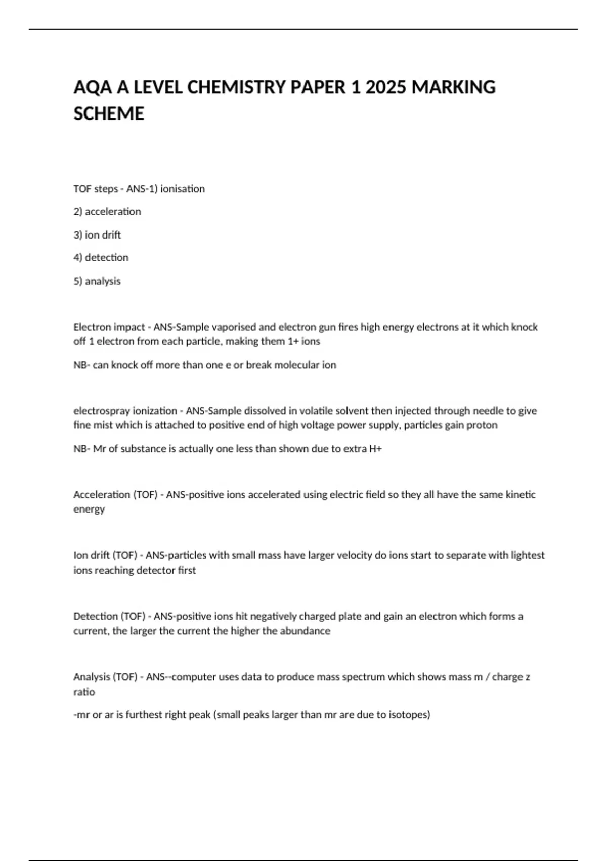 AQA A LEVEL CHEMISTRY PAPER 1 2025 MARKING