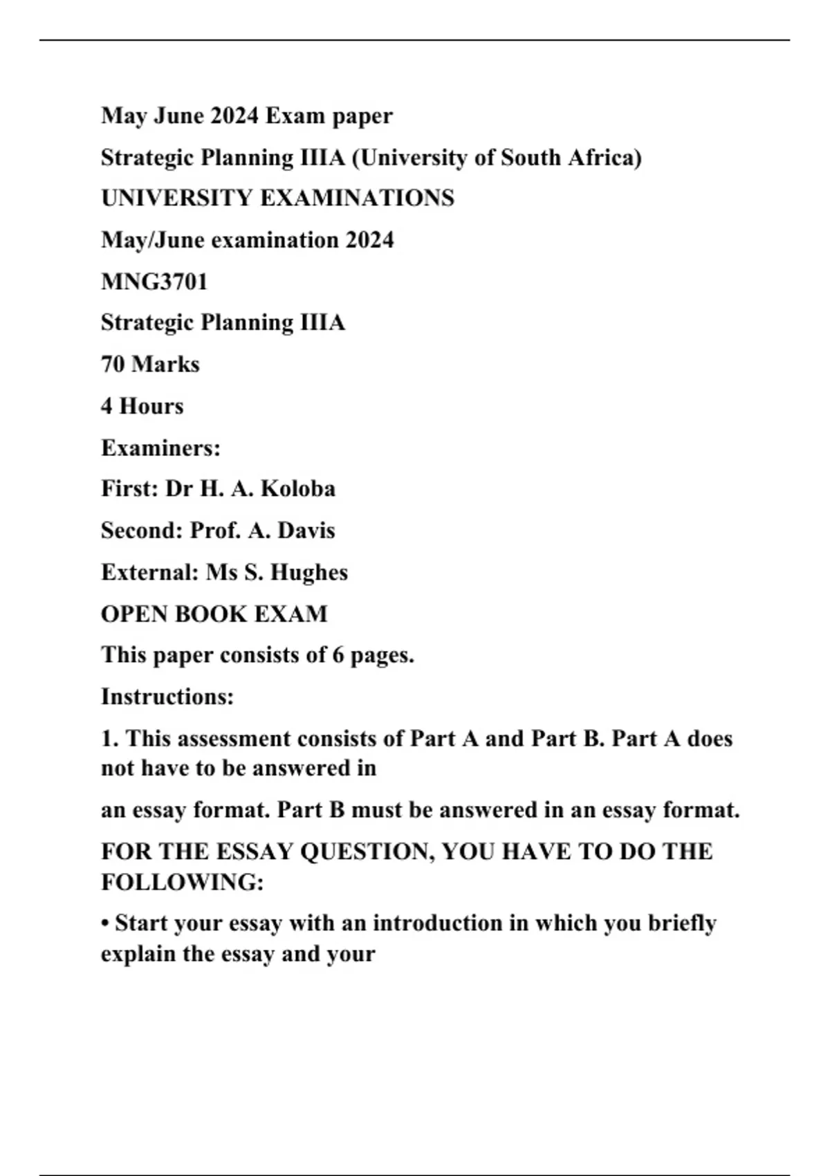 Strategic Planning IIIA (University of South Africa)