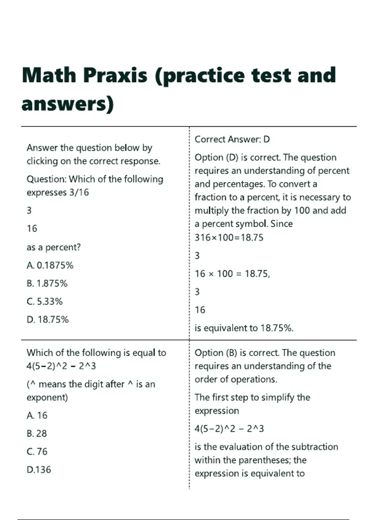 Math Praxis (practice test and answers).