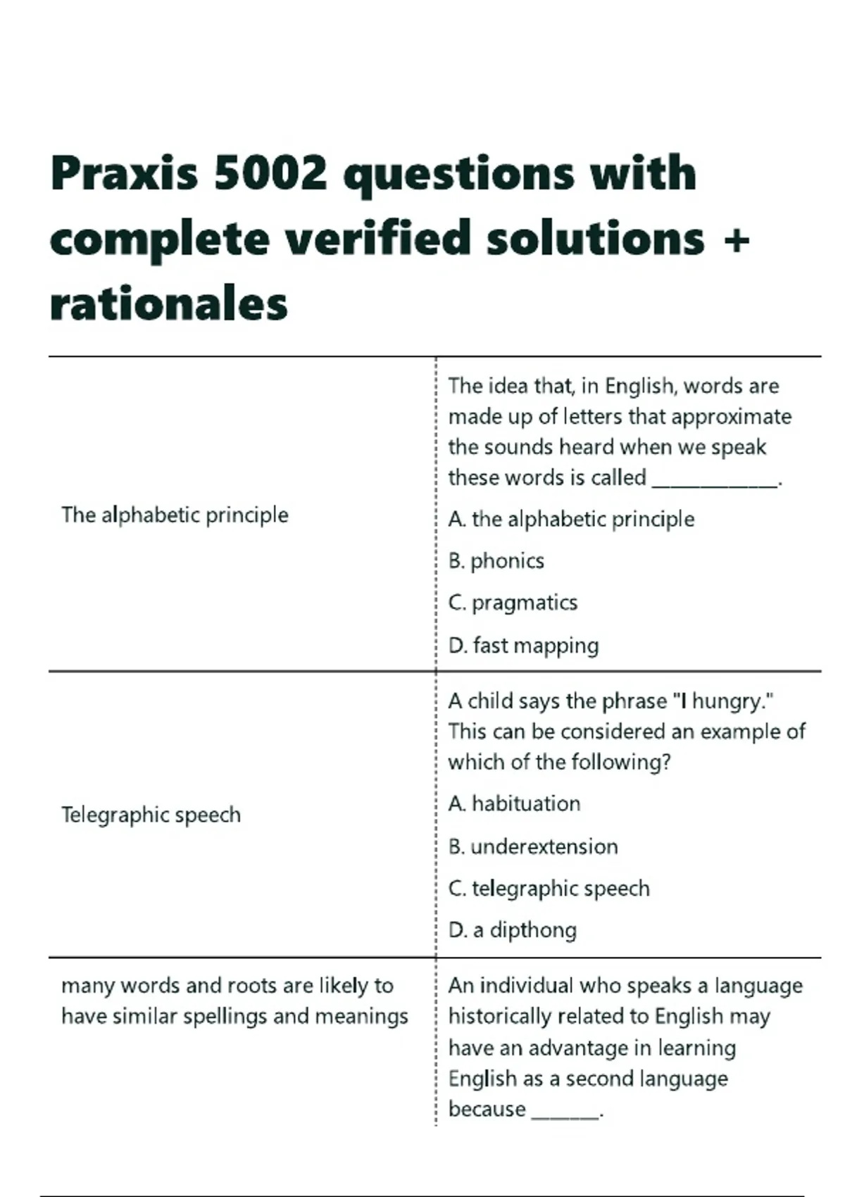 Praxis 5002 questions with complete verified solutions + rationales 2025