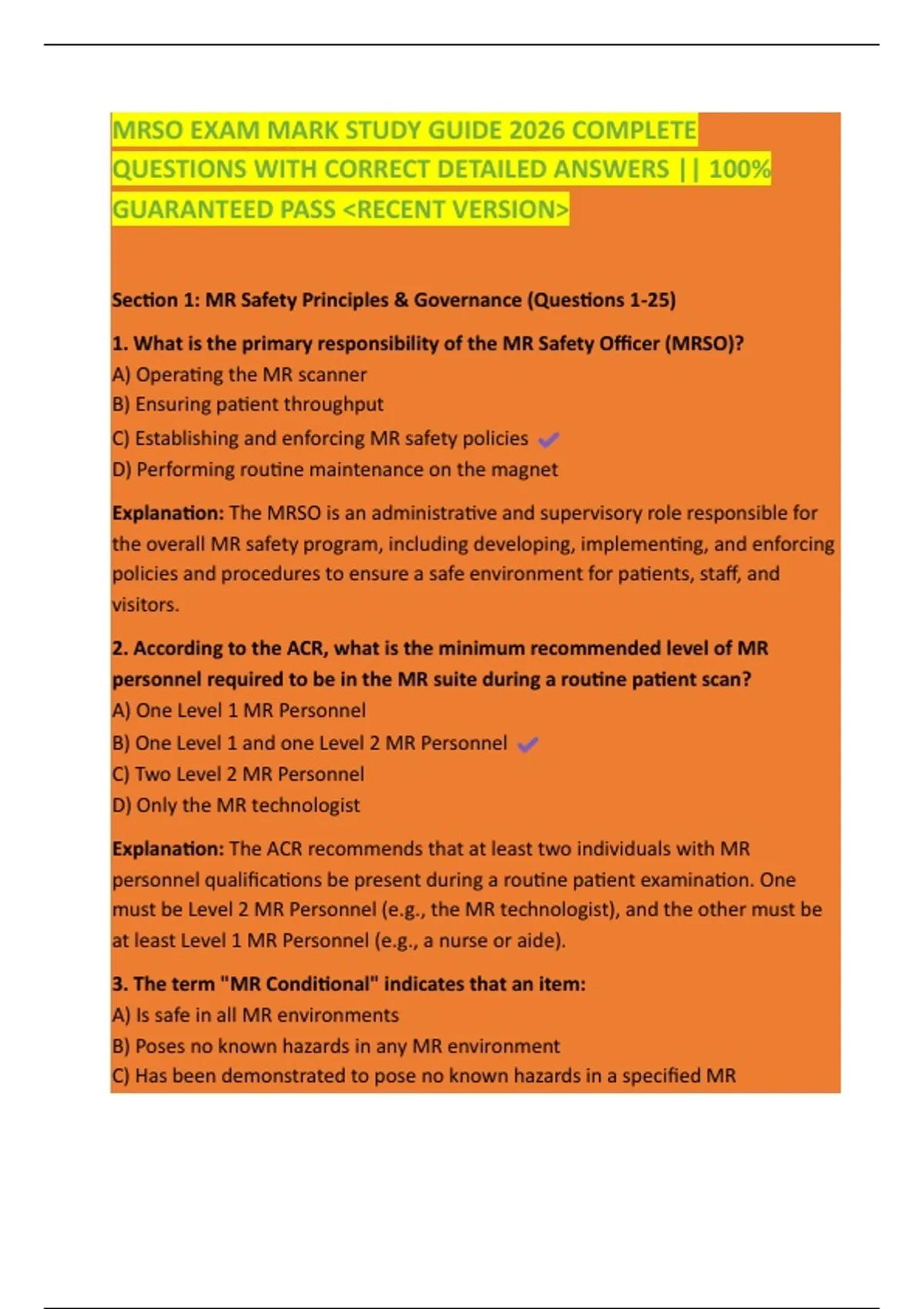 Section 1: MR Safety Principles & Governance (Questions 1-25)