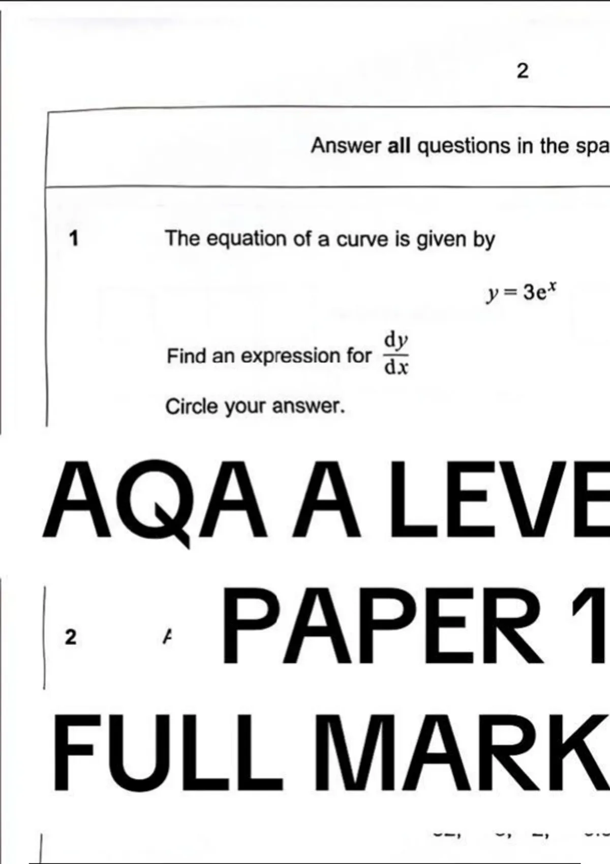 - 2025 AQA A LEVEL MATHEMATICS PAPER I