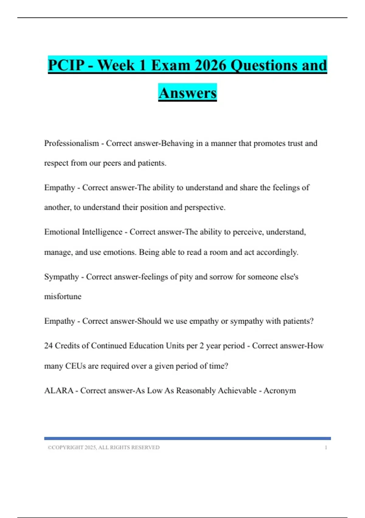 PCIP - Week 1 Exam 2026 Questions and