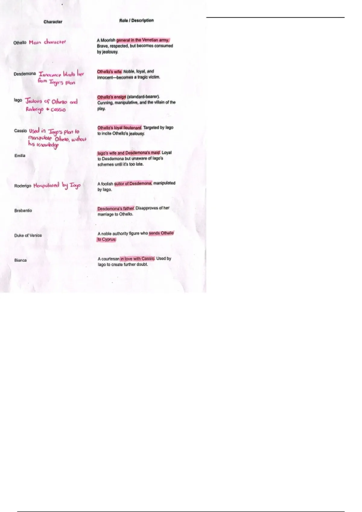Summary NSC IEB grade 12 English Othello notes