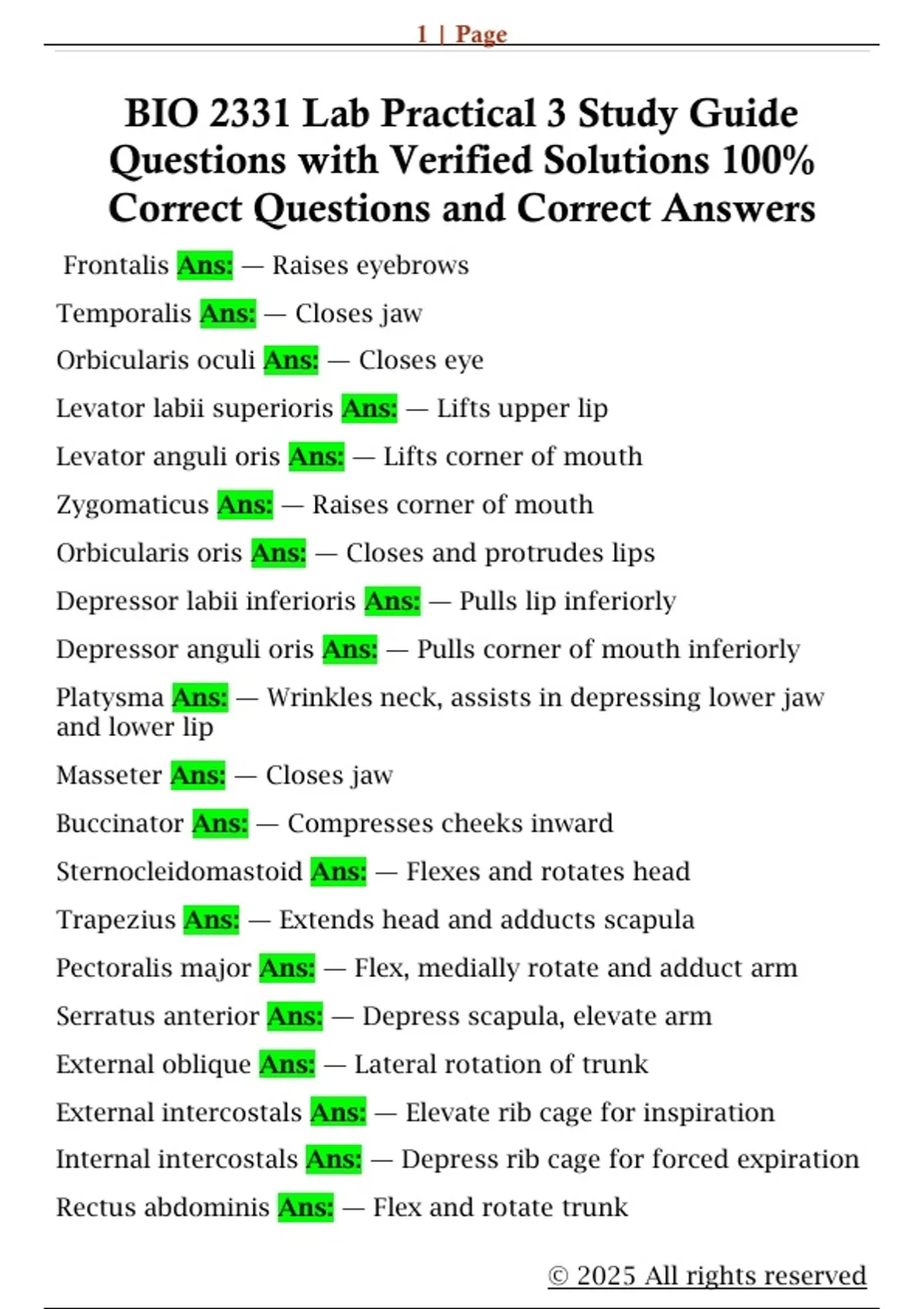 Platysma Ans: — Wrinkles neck, assists in depressing lower jaw