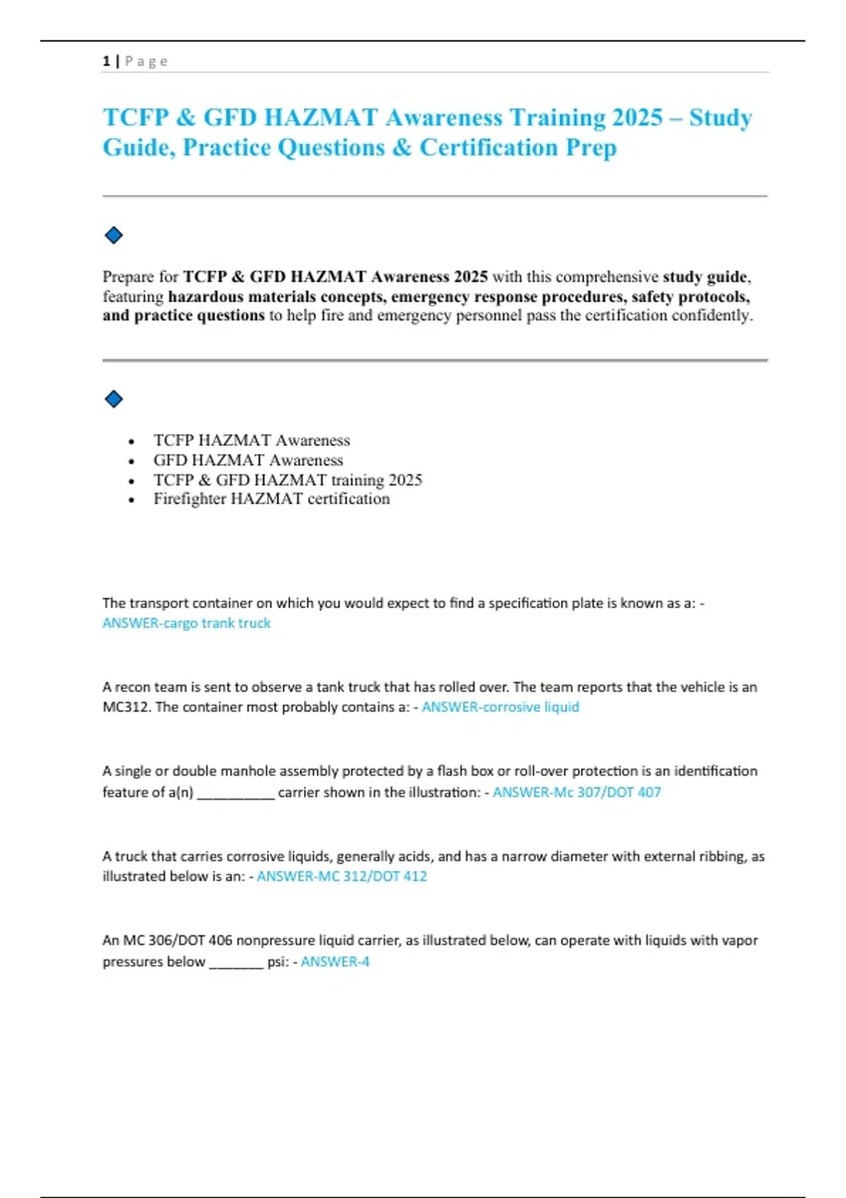 Prepare for TCFP & GFD HAZMAT Awareness 2025 with this comprehensive study guide,
