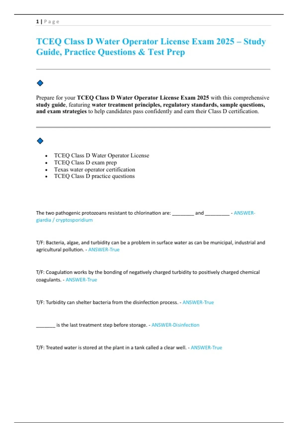 • TCEQ Class D exam prep