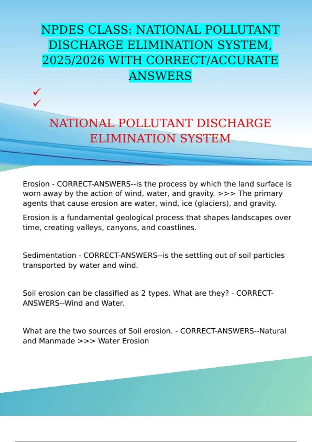CORRECT-ANSWERS--Overland and Stream/Channel erosion.