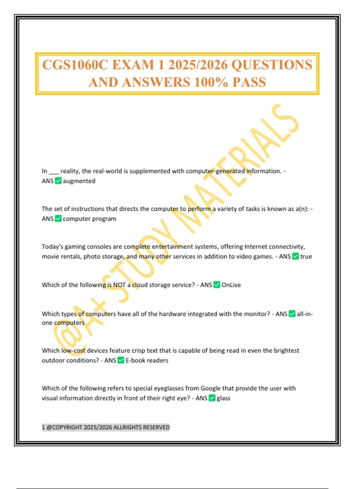 CGS1060C EXAM 1 2025/2026 QUESTIONS