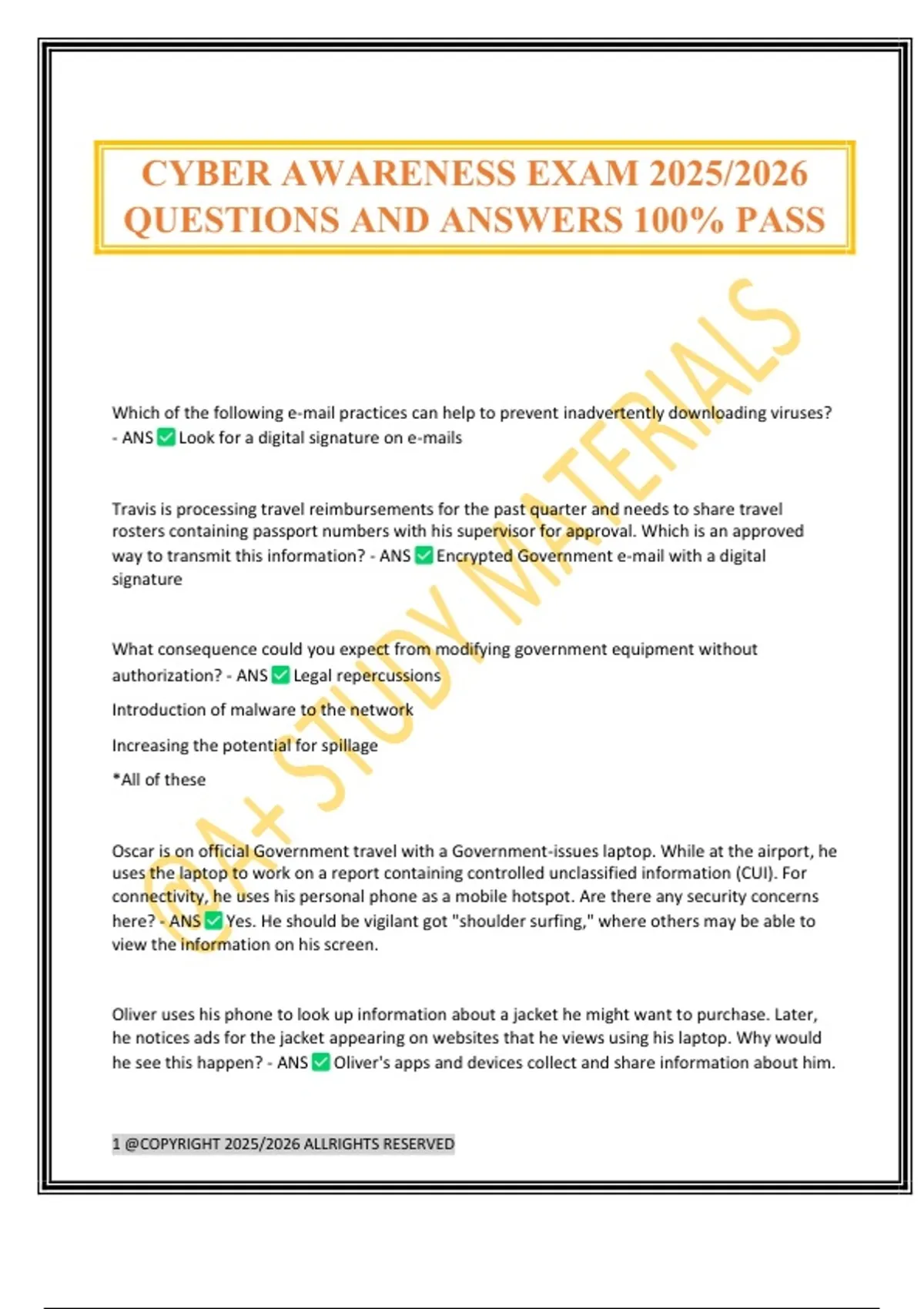 CYBER AWARENESS EXAM 2025/2026