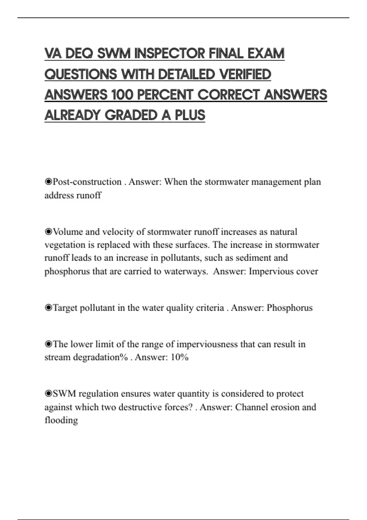 ◉Post-construction . Answer: When the stormwater management plan