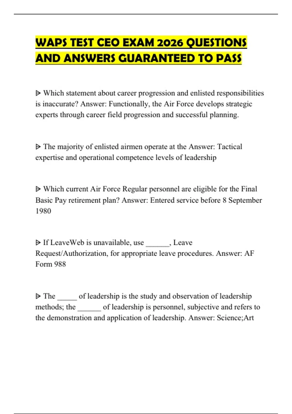 AND ANSWERS GUARANTEED TO PASS
