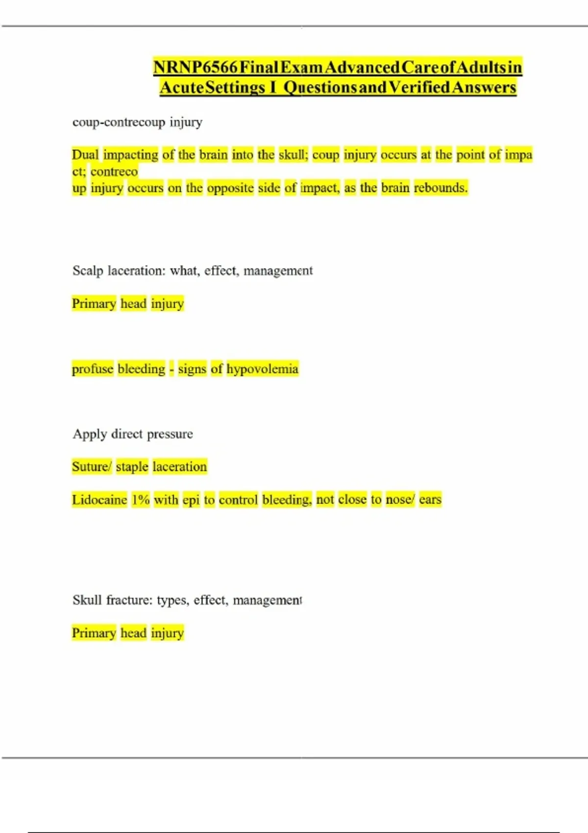 NRNP6566 Final Exam Advanced Care of Adults in Acute Settings Questions and Verified AnswersNRNP6566 Final Exam Advanced Care of Adults in Acute Settings Questions and Verified Answers