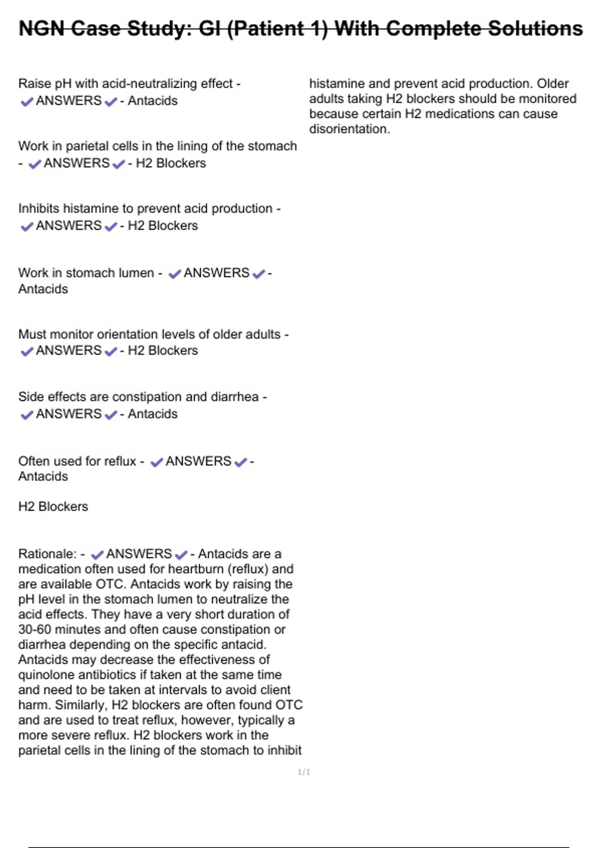 ANSWERS - Antacids adults taking H2 blockers should be monitored
